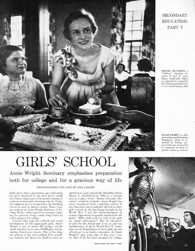 “I feel that Miss Annie Wright’s likeness, gazing out upon our school, will become dear to the hearts of the girls and surely lead us from ‘Strength to Strength’” [November 1945 Junior Journal]