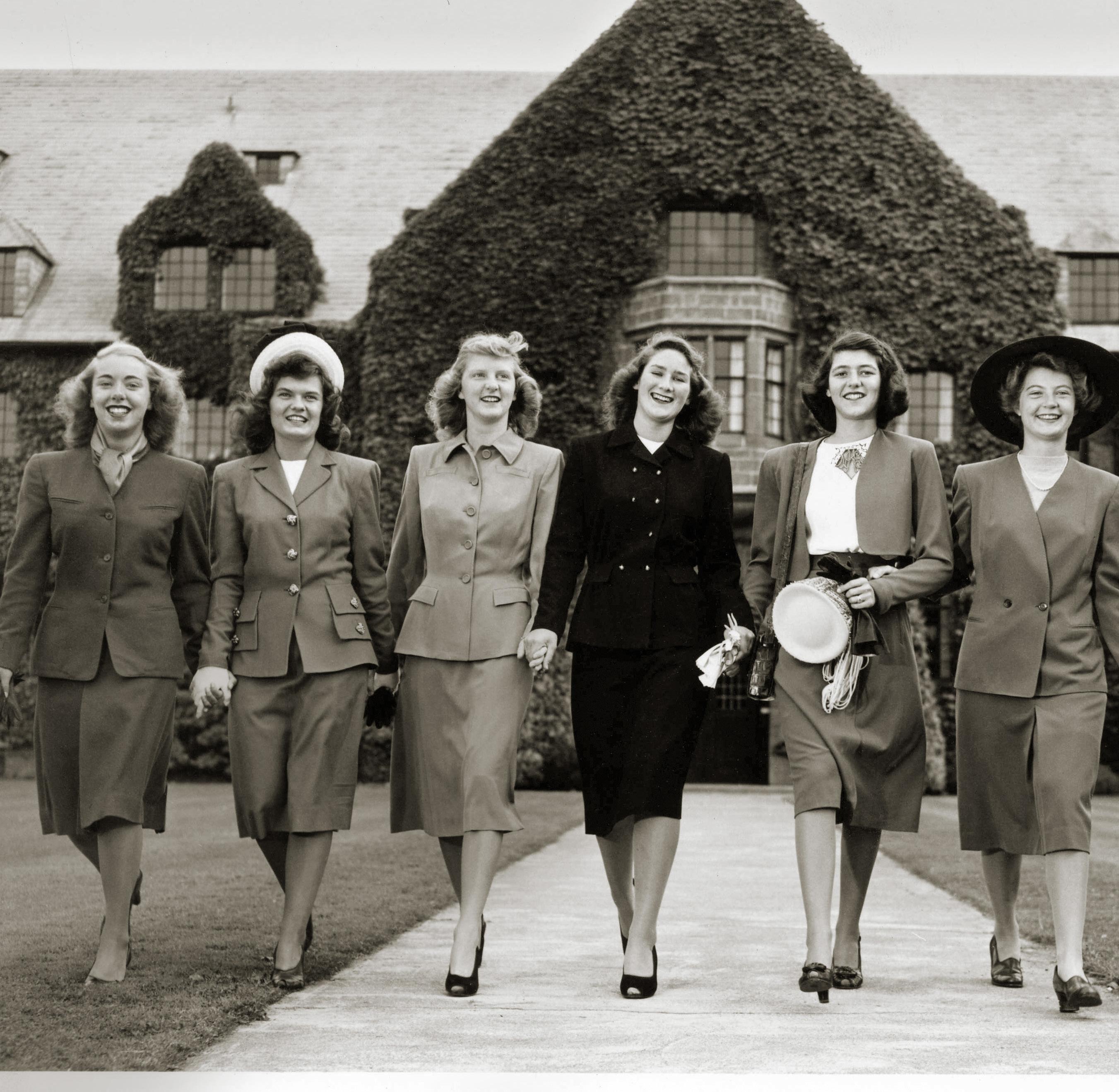 Marilyn (Kleinberg) Levin ’47 is pictured here with some fellow grads in this iconic “Going to College” photo, which has been recreated by several graduating classes in recent years. Now in her mid-nineties, Marilyn known to her former classmates as “Klink”— is a seemingly boundless source of stories and anecdotes from Annie Wright through the ages. Marilyn recently met with Director of Development Grace Finch in her Los Angeles home, where they reflected together on nearly a century’s worth of memories, from her time at Annie Wright to her global travels and beyond.