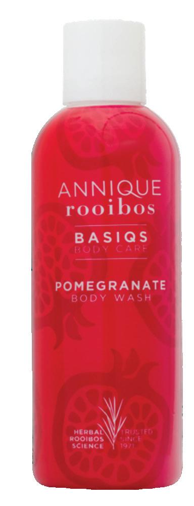BasiQs Pomegranate Body Wash creates a fresh lather for allover, gentle cleansing. This gel body wash has a sweet, fruity fragrance and is infused with Rooibos Extract and is rich in antioxidants