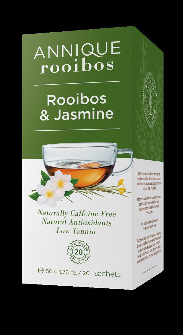 THE ROOIBOS & JASMINE TEA HELPS TO REPLENISH BODILY SYSTEMS WITH HEALTHENHANCING ANTIOXIDANTS, WHICH REDUCES INFLAMMATORY CONDITIONS.