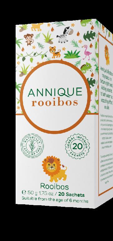 Annique Baby Rooibos tea contains antioxidants and is caffeine-free. It can also help soothe skin rashes and sensitivity when added to bathwater or applied directly onto the skin.