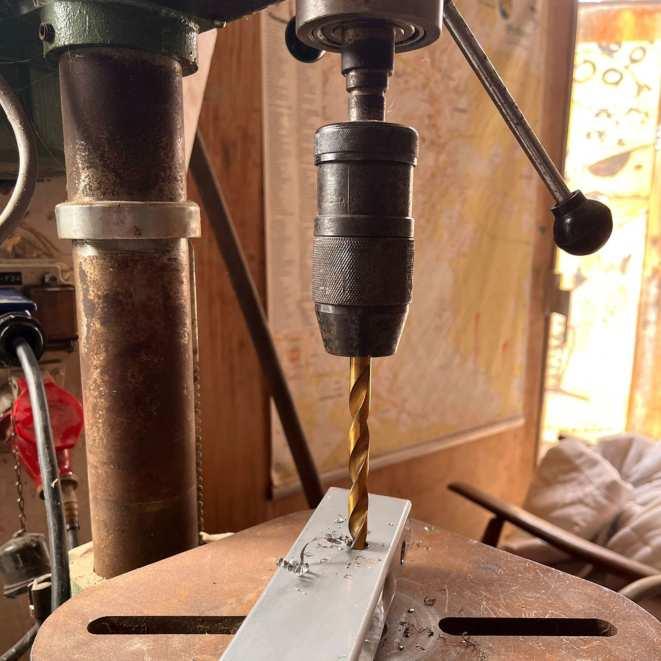 Mit Tischbohrmaschine wurden die Lˆcher f¸r die Verbindungen gebohrt.