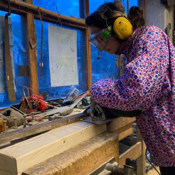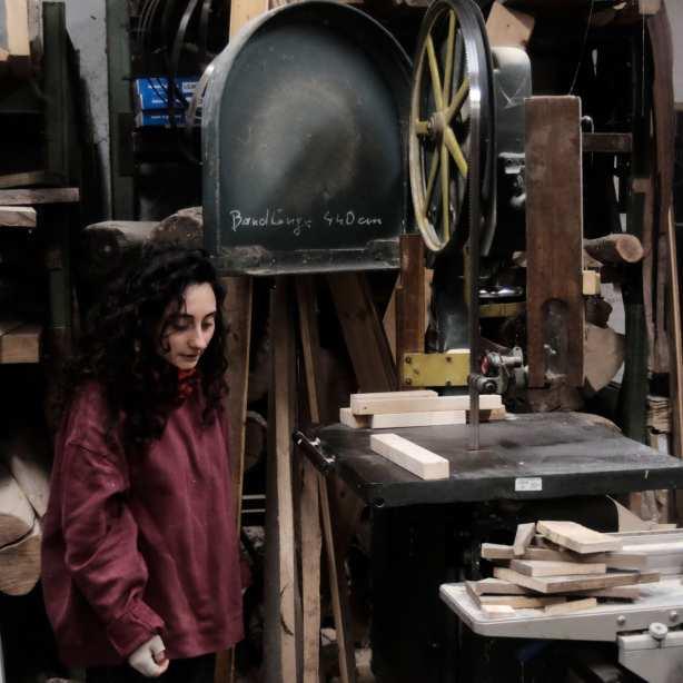Um die Latten und Bretter rechtwinklig zu schneiden, wurde eine Tischkreiss‰geverwendet.