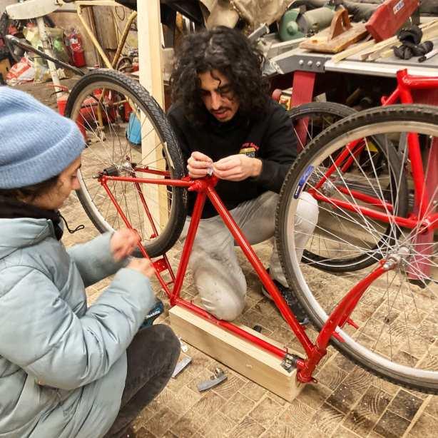 Nicht benˆtigte Fahrradteile wurden demontiert und zur Wiederverwendung bereitgestellt.