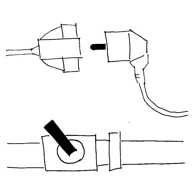 Die Fahrr‰der wurden mit U-fˆrmigen Metallteilen auf dem Verbindungsbalken befestigt. Zwischen dem Fahrradrahmen und den Metallteilen wurde eine Dichtung (aus Fahrradschlauch) angebracht.