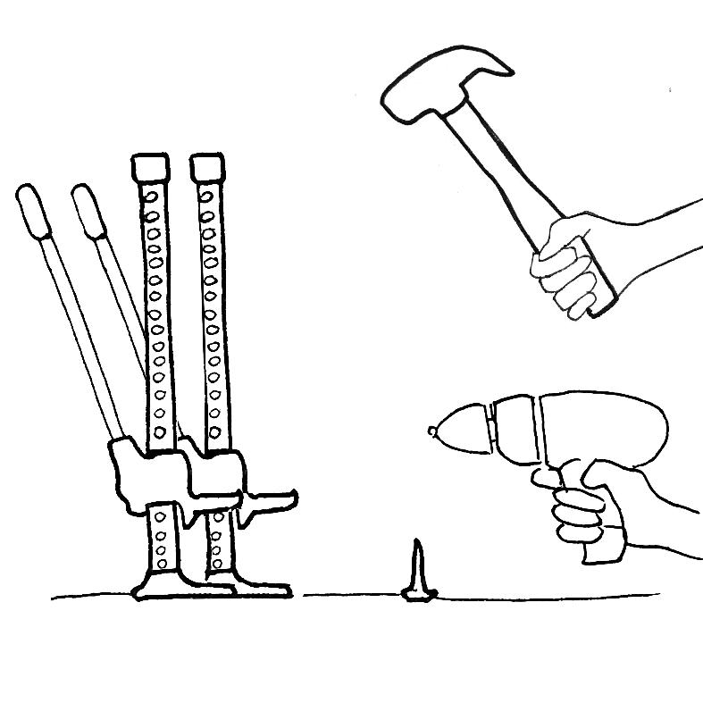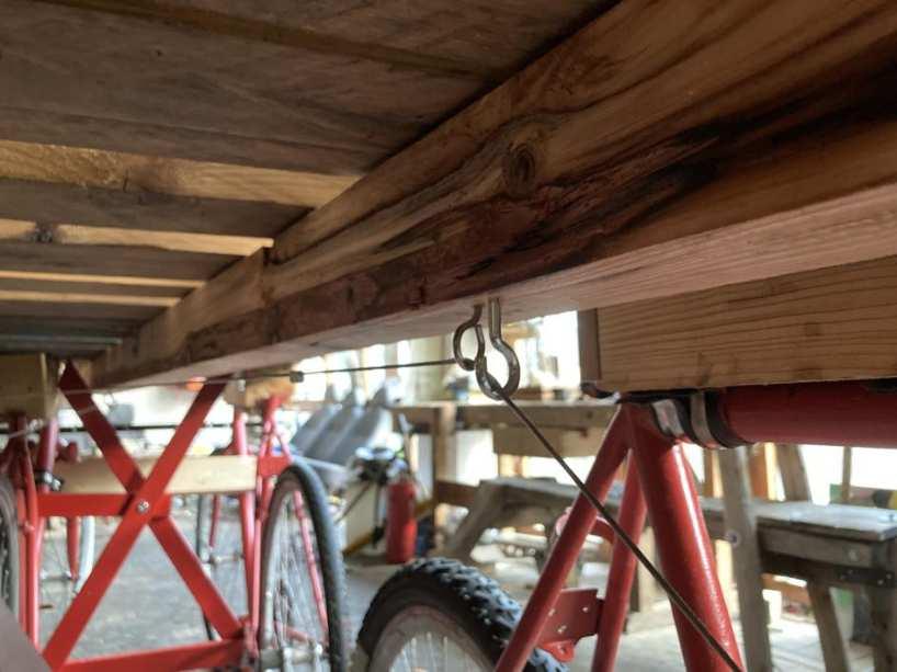 Vergleichder Aussteifungselemente, die die Fahrr‰dergegen das Gewicht desTiny House (horizontale Belastung) und die Windlast (vertikale Belastung) sichern.