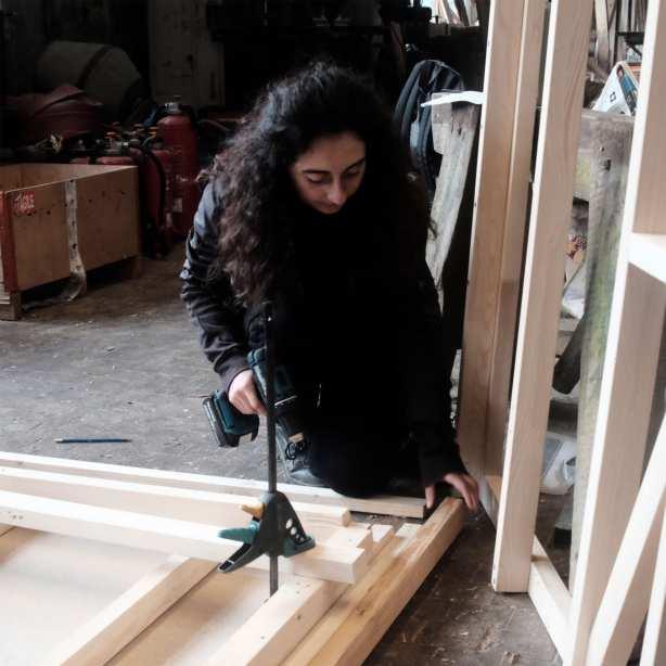 Die verwendeten Metallprofile wurden aus gebrauchten Bettrahmen gewonnen und mit einem Winkelschleifer auf die entsprechenden Mafle zugeschnitten.