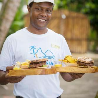 Don’t forget to try our Jungle Grill & Bar on Anse Mamin beach featuring its famous Burger Menu!
