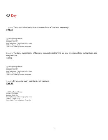 1. (p. 114) The corporation is the most common form of business ownership. FALSE