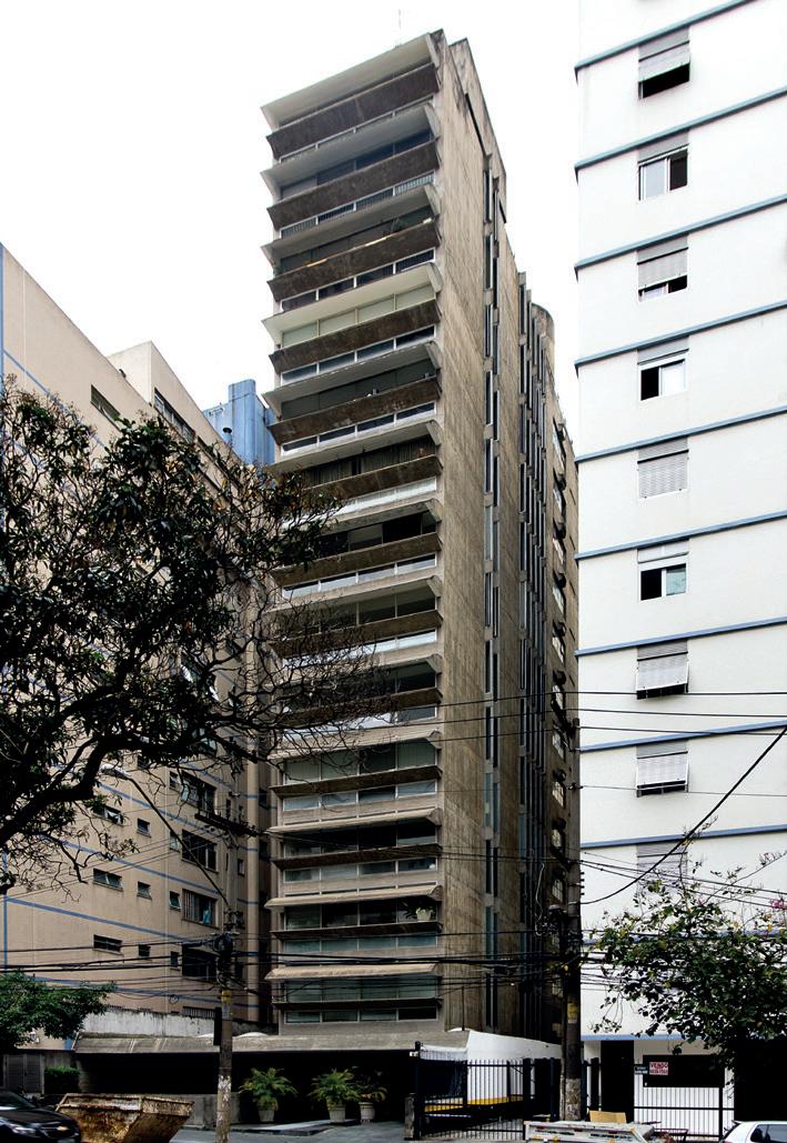committente, Sylvio Margarido (Xavier, Lemos, Corona 1983). Guardando la pianta del piano tipo, risalta l’inserimento di logge asimmetriche come espediente per mantenere l’aderenza al fronte stradale, arretrando il prospetto interno e rendendolo parallelo a quello posteriore per regolarizzare gli ambienti e attribuire alla facciata frontale, simmetrica, un notevole valore plastico grazie all’ombra profonda, espediente che verrà utilizzato anche da Giancarlo Palanti nell’Edifício Lily del 1948 con meno efficacia volumetrica anche a causa dell’utilizzo di schermature che ricostituiscono il volume celando la loggia. L’alternanza che si stabilisce tra i pieni e i vuoti dell’Edifício Margarido fa riferimento al progetto lecorbusieriano degli Immeuble Villas del 1922 e alla casa di Adolf Rading al Werkubund del 1929, utilizzata in progetti successivi tra i quali, per ricordare i più noti, i Villini A e B di Adalberto Libera a Ostia del 1932 e la Casa del Fascio di Giuseppe Terragni a Como del 1936. Nei due appartamenti per piano, una logica distributiva funzionalista poneva al centro sulla facciata esterna i bagni con una minore altezza del soffitto tale da consentire l’inserimento di un’intercapedine per aerare le cucine, che non avevano finestre. Le camere da letto, affacciate sul retro (quindi sul versante più silenzioso), si aprivano direttamente sul soggiorno, di fronte al bagno. All’ultimo piano, dieci stanze di servizio, una per ogni appartamento, presentavano una copertura a shed che rimanda alla casa-atelier per Amédee Ozenfant e alla Maison Planeix dei primi Le Corbusier