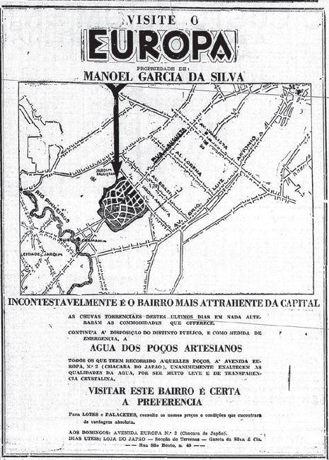 1.6 Annuncio pubblicitario di lottizzazione sul modello della Cittàgiardino della zona Jardim Europa, 1929.