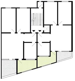 1.9 Júlio de Abreu Júnior. Pianta dell’Edifício Marina Mendes Margarido, 1927. A. ingresso unico 1. Salone e sala da pranzo 2. Camera 3. Cucina 4. Bagno 5. Terrazzo.