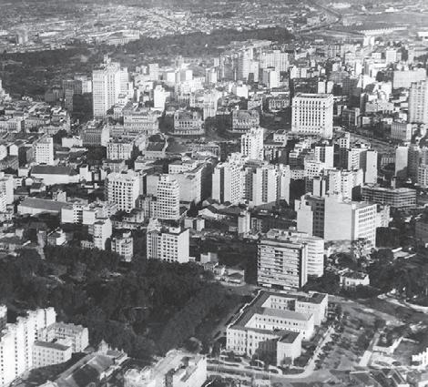 Fotografia aerea di São Paulo degli anni ‘60. A destra, in basso, all’angolo prospiciente il parco, è possibile vedere l’Edifício Esther; più in alto è visibile il Prédio Matarazzo.