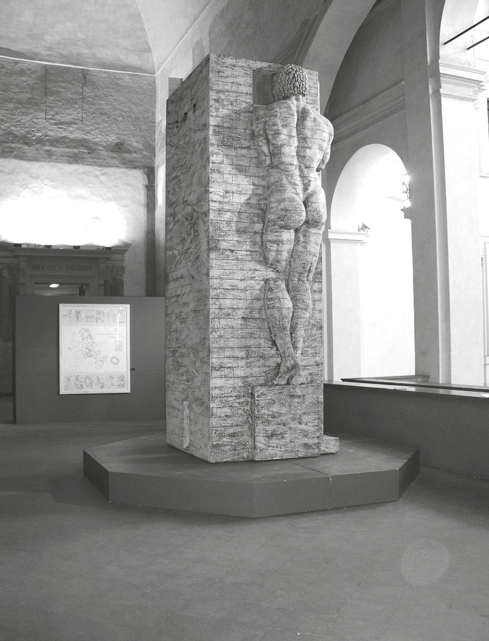 D’altra parte tutto il complesso del Palazzo della Pilotta risuona di questa monoliticità classica, anche se realizzato in mattoni, certamente, come è stato più volte osservato, stilisticamente vicino ai partiti murari bramanteschi. A dare forza ancora di più a questo confronto è il continuo riportare da parte di Casadei una forma di ricostruzione inversa che apparenta l’analisi e la scomposizione tipologica del progetto alle rovine murarie derivate dai bombardamenti di guerra che la Pilotta aveva subito nel 1944, immagini che appaiono nelle foto del periodo e che persistono nella mente e nella memoria degli abitanti di Parma, e che in fondo uniscono in modo condiviso, come una profonda memoria storica, tutte le nostre città europee, in una specie di anno Zero diffuso, descritto nei bellissimi film di Roberto Rossellini, paesaggi fisici e morali, tra i lacerti di impianti murari, in una dimensione contemporanea che è la memoria conosciuta delle nostre rovine recenti.