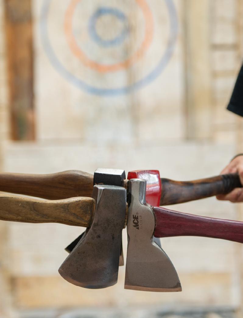 Venez vivre une expérience unique en famille avec le lancer de hache, beau temps, mauvais temps ! Que ce soit pour le plaisir ou la compétition, les coachs experts vous guideront. Ambiance conviviale, l'idéal pour toute la famille (8 ans et plus). Prêts à relever le défi ? Come and enjoy a unique family axe-throwing experience, rain or shine! Whether for fun or competition, our expert coaches will guide you. A friendly atmosphere, ideal for the whole family (aged 8 and over). Ready to take up the challenge?