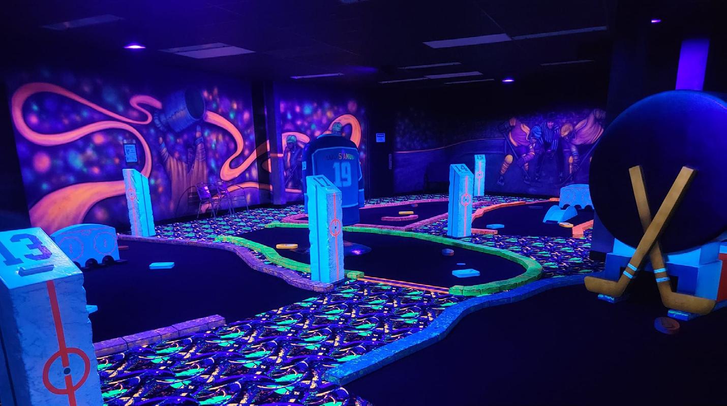 Profitez d'un agréable moment entre amis ou en famille sur l'un des 2 parcours de mini-golf fluorescent intérieur au Bar Laitier Mini Golf Fluo S'Amuse ! Ouvert 12 mois par année. Salle disponible pour les fêtes (sur réservation). Enjoy time with friends and family on one of the two indoor fluorescent mini-golf courses at Mini-Golf Fluo Creamery! Open 12 months a year. Room available for parties (reservation required). fluosamuse.com