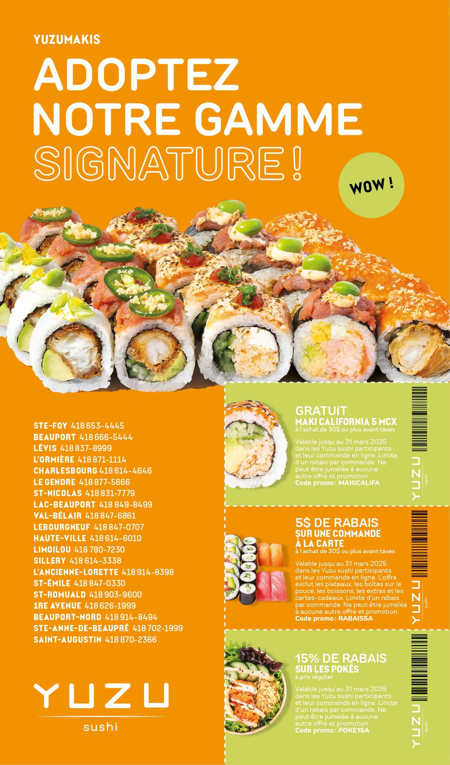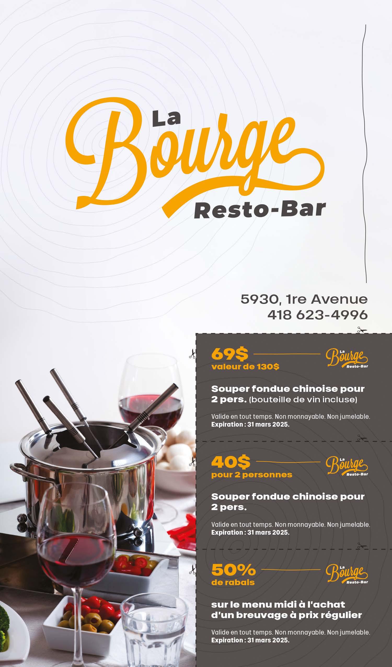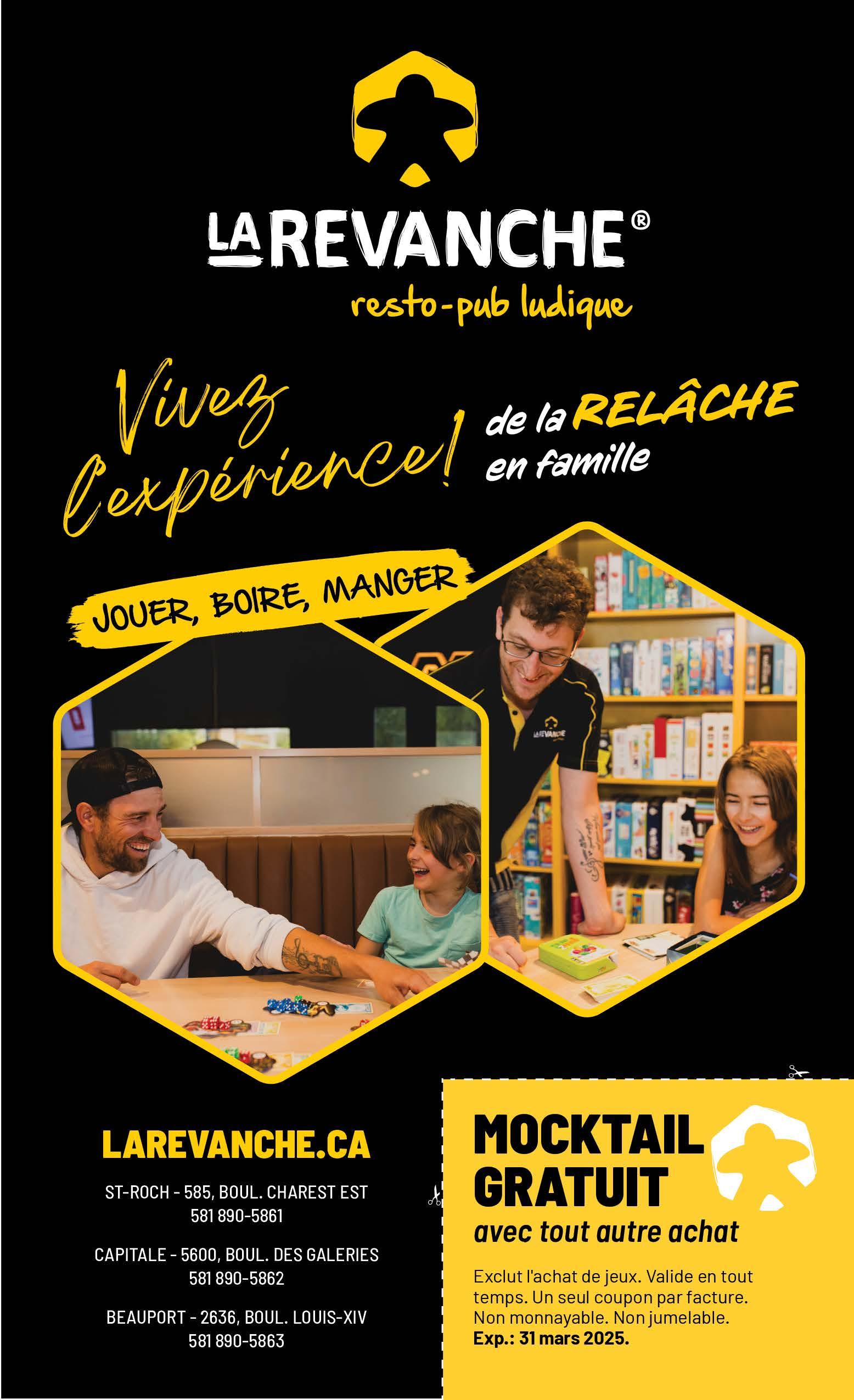 Valide sur place seulement. 1 coupon par facture. Non monnayable. Ne peut être jumelé à aucune autre promotion. Exp.: 31 mars 2025.