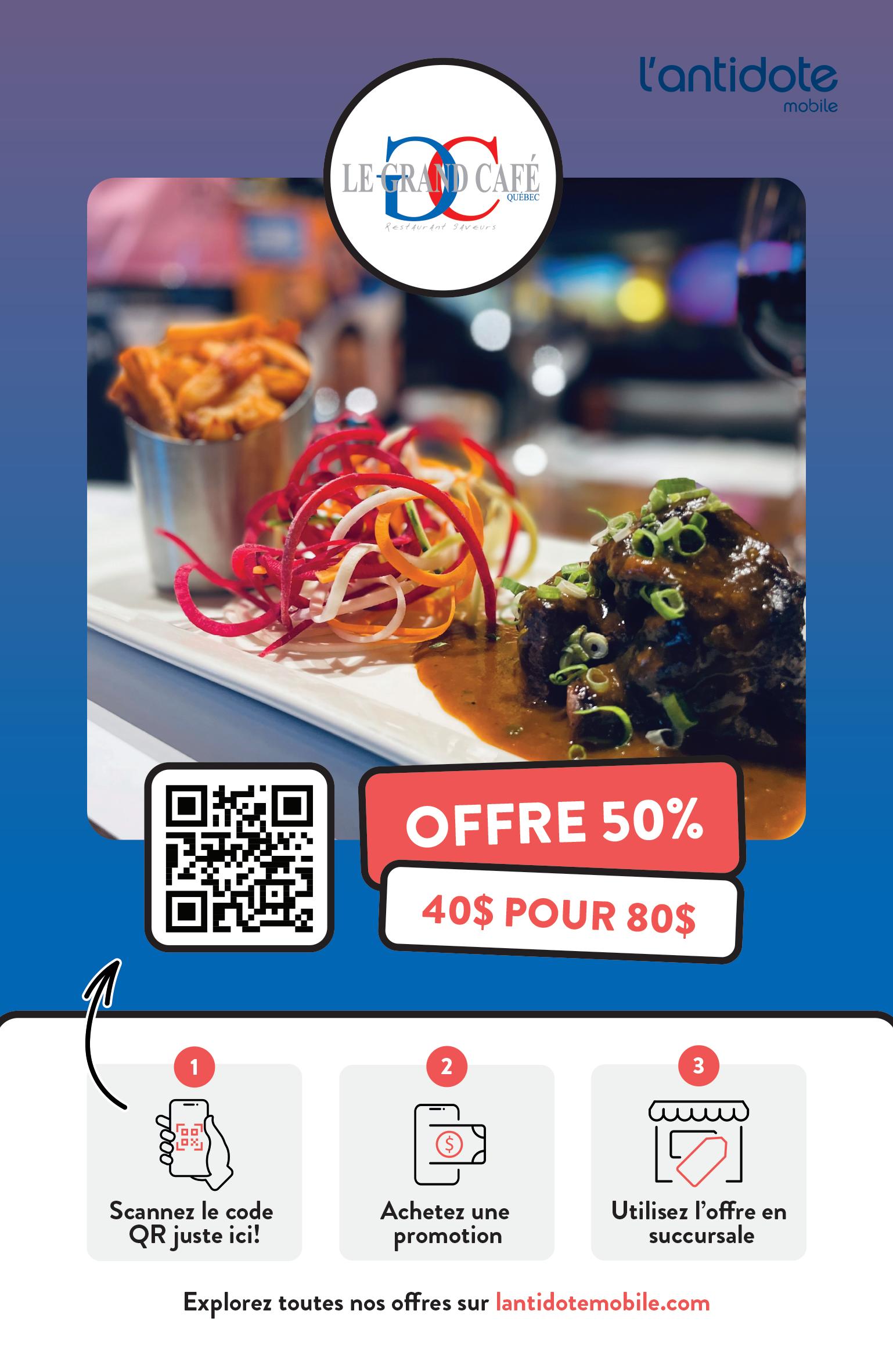 Sur présentation de ce coupon. Ne peut être jumelé à d’autres promotions. Non monnayable. Non jumelable.