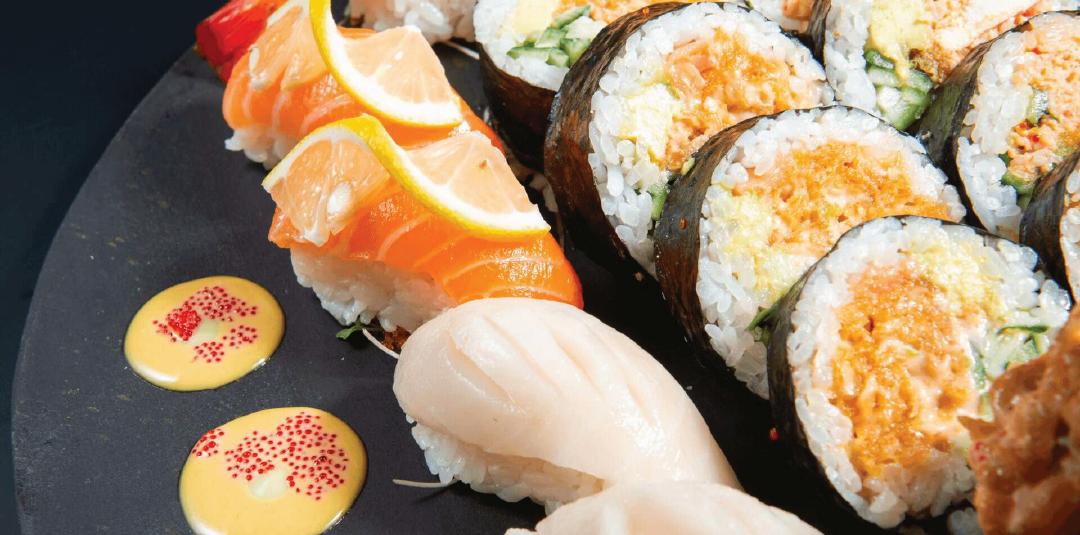 Formule table d'hĂ´te. 2 verres vin, 2 soupes miso, et assiette de 18 mcx Ă partager.