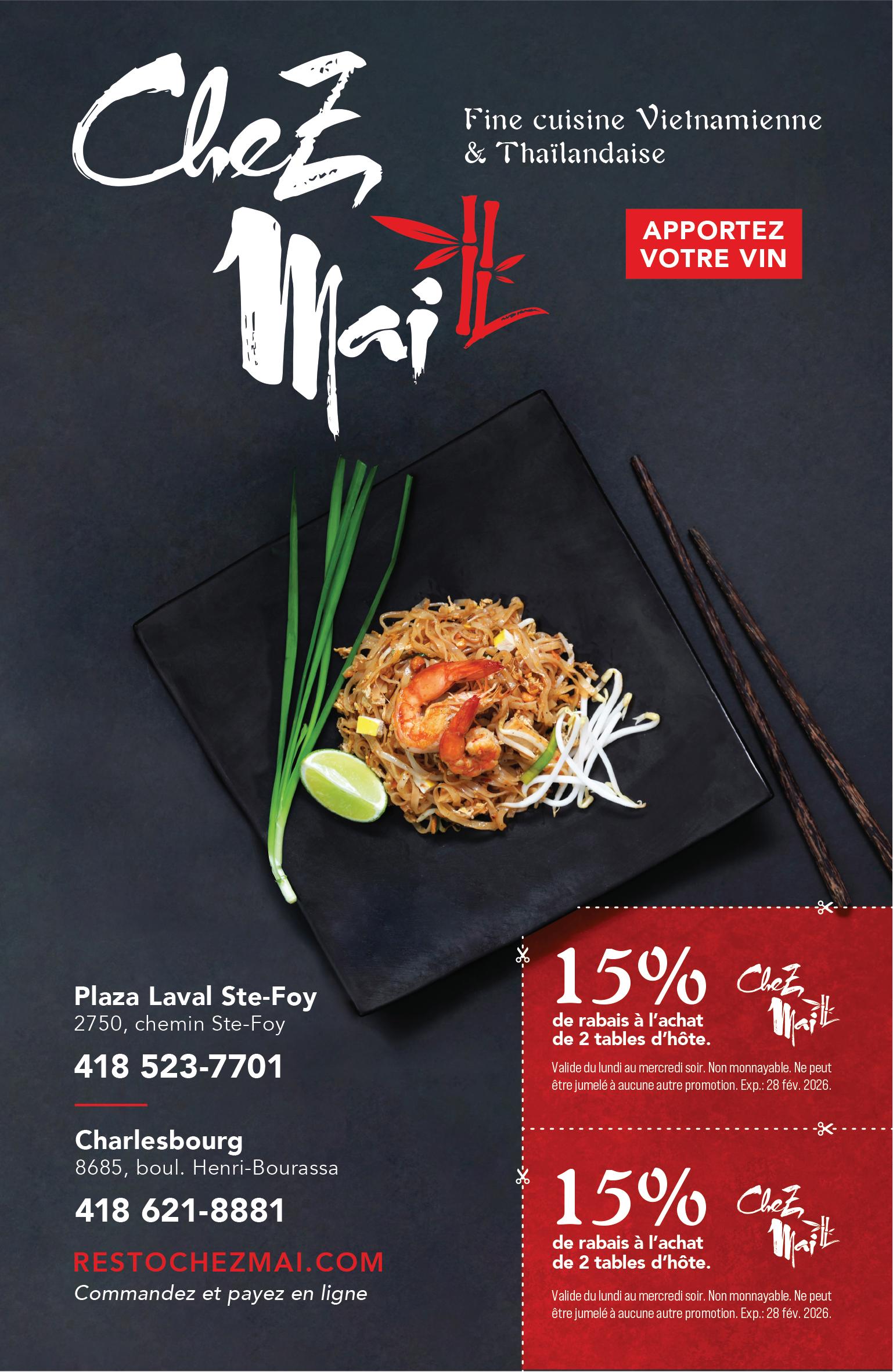 Sur présentation de ce coupon. Ne peut être jumelé à d’autres promotions. Non monnayable. Non jumelable. Exp.: 31 mars 2026