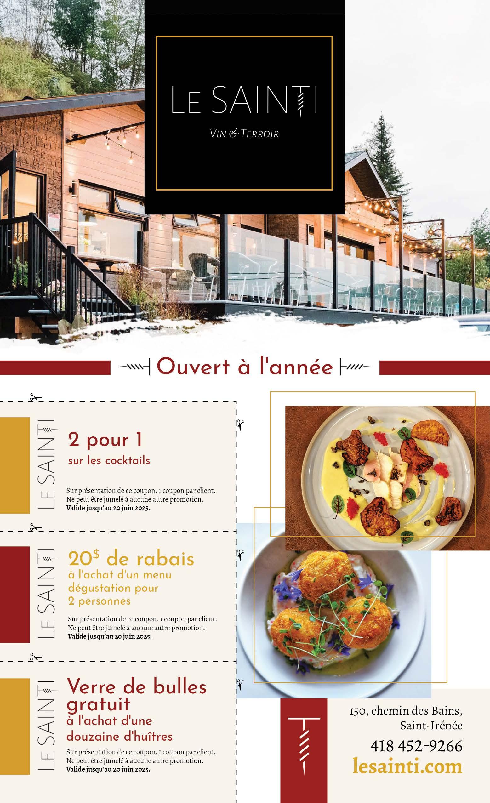 Sur présentation du coupon. 1 coupon par client, par facture. Non monnayable. Non jumelable. Exp.: 13 février 2025. sur le Menu Midi 3 services avant taxes