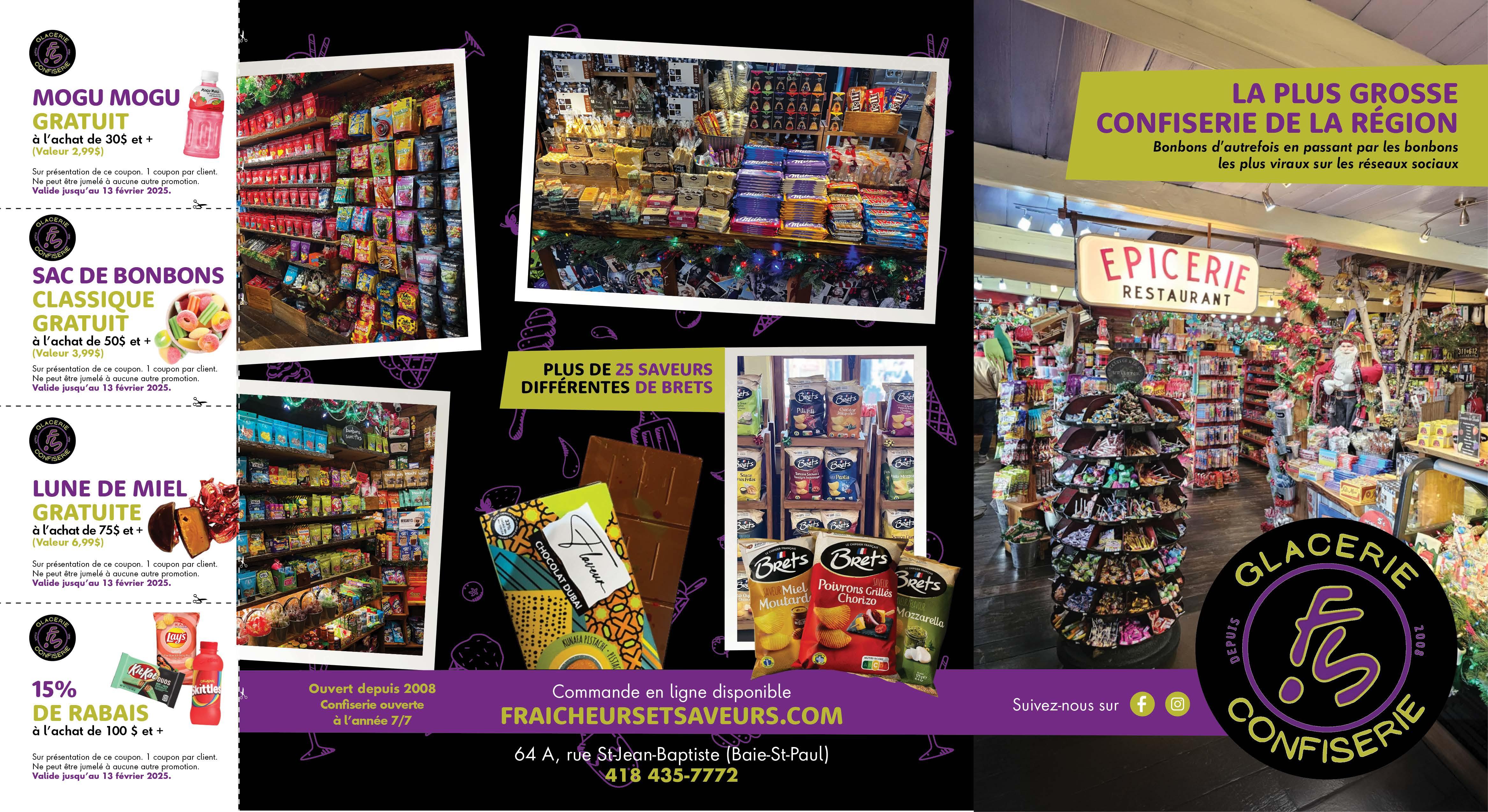 Sur présentation du coupon. 1 coupon par client, par facture. Non monnayable. Non jumelable. Exp.: 13 février 2025. à l’achat de 50$ avant taxes