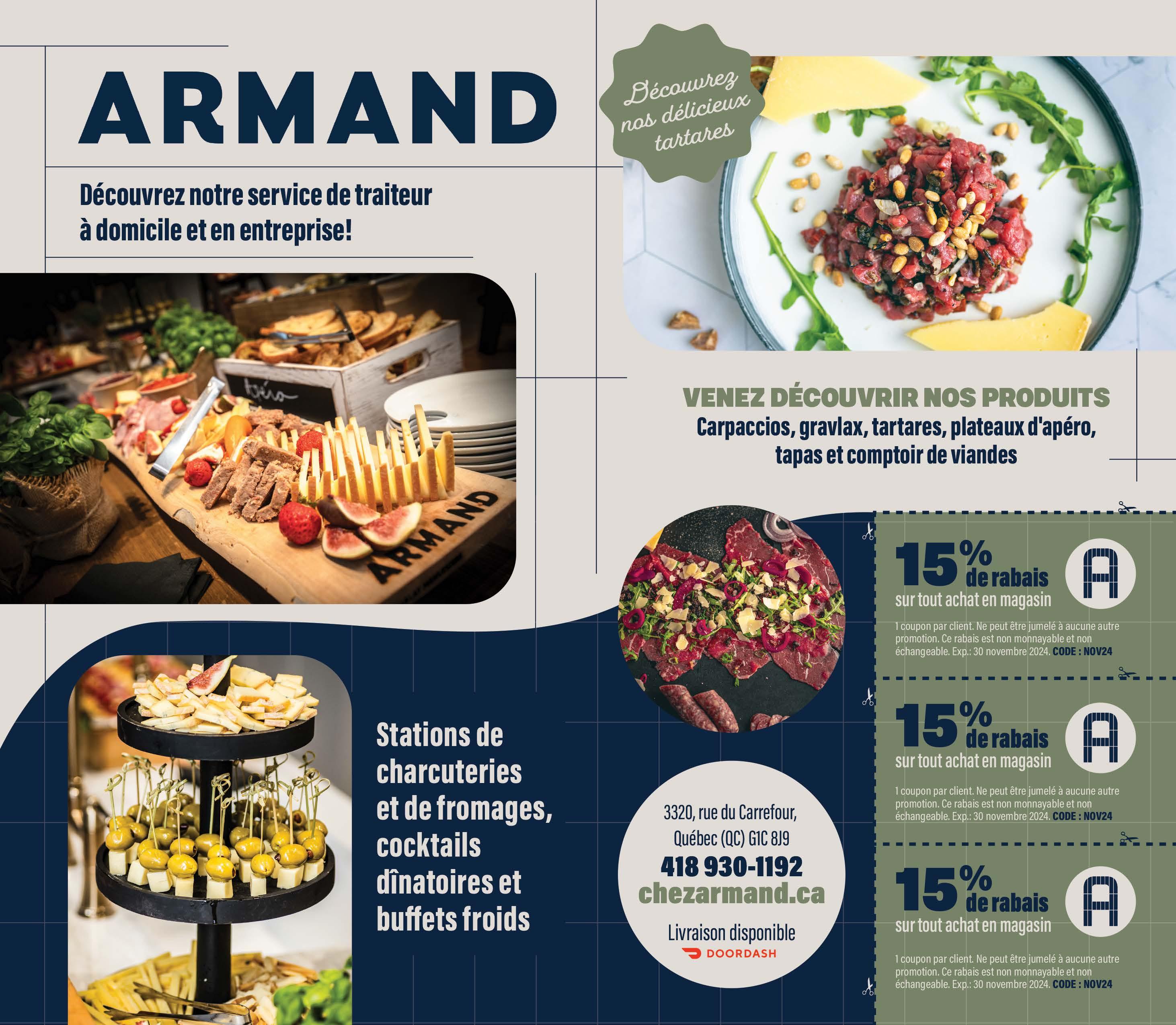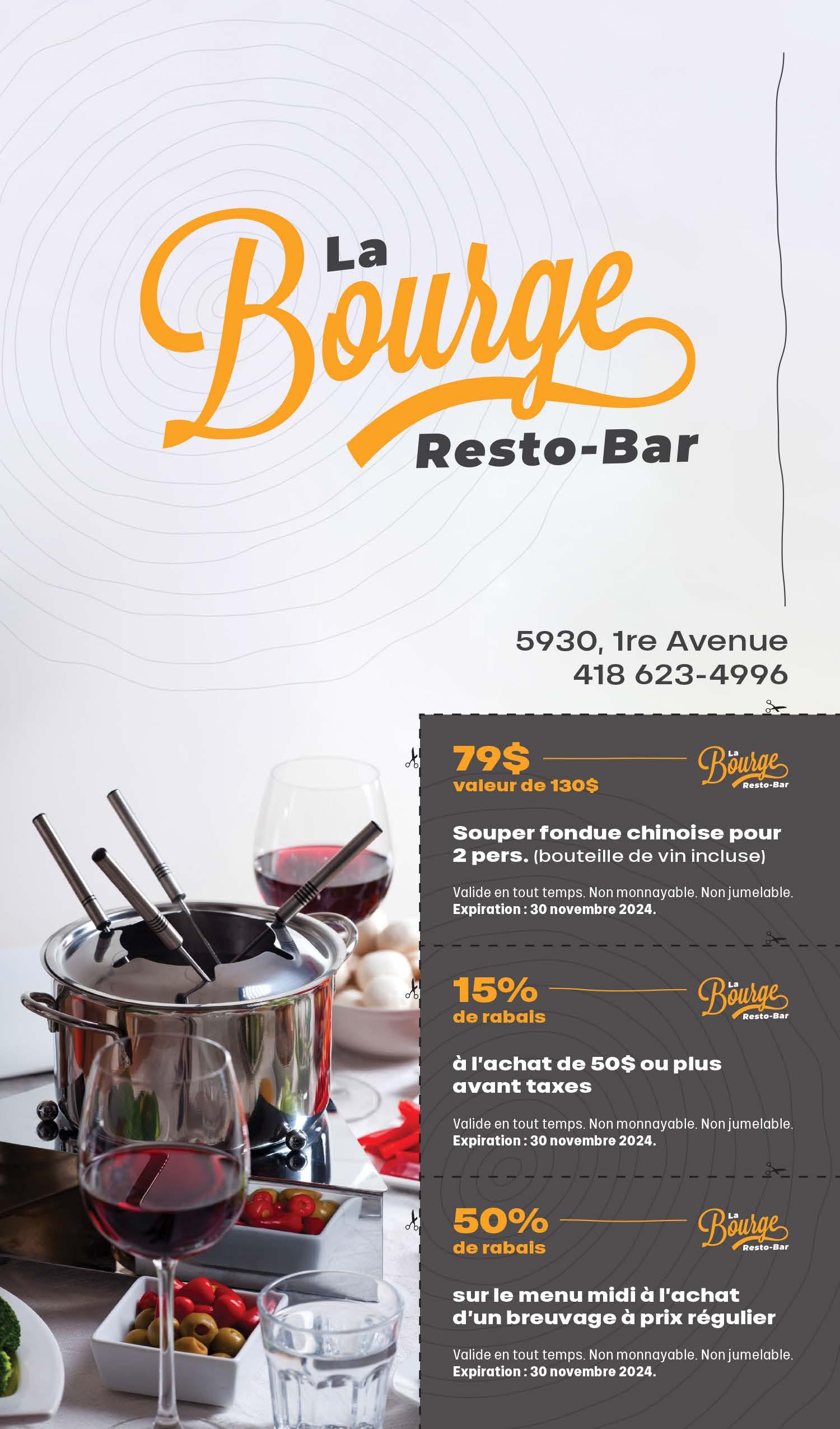 *Un rabais par facture. Ne peut être jumelé à aucune autre offre spéciale et boissons alcoolisées. Mentionnez cette offre lorsque présentez votre coupon lors du