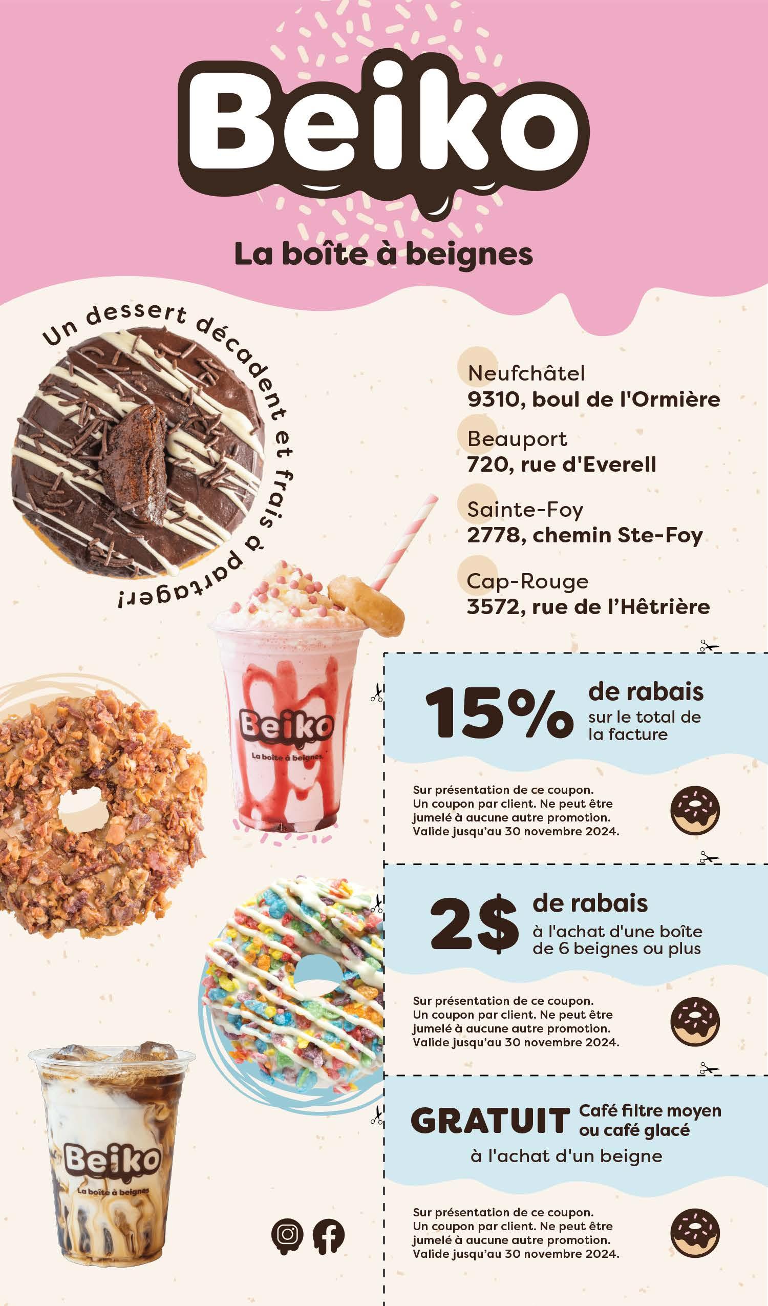 Beauport: 2377, avenue du Bourg-Royal Lebourgneuf: 2013, boulevard Lebourgneuf Local 109