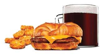2 oeufs, 2 roties, con ture, choix de saucisses ou de bacon et café à volonté*. * Maximum de 3 remplissages par personne.