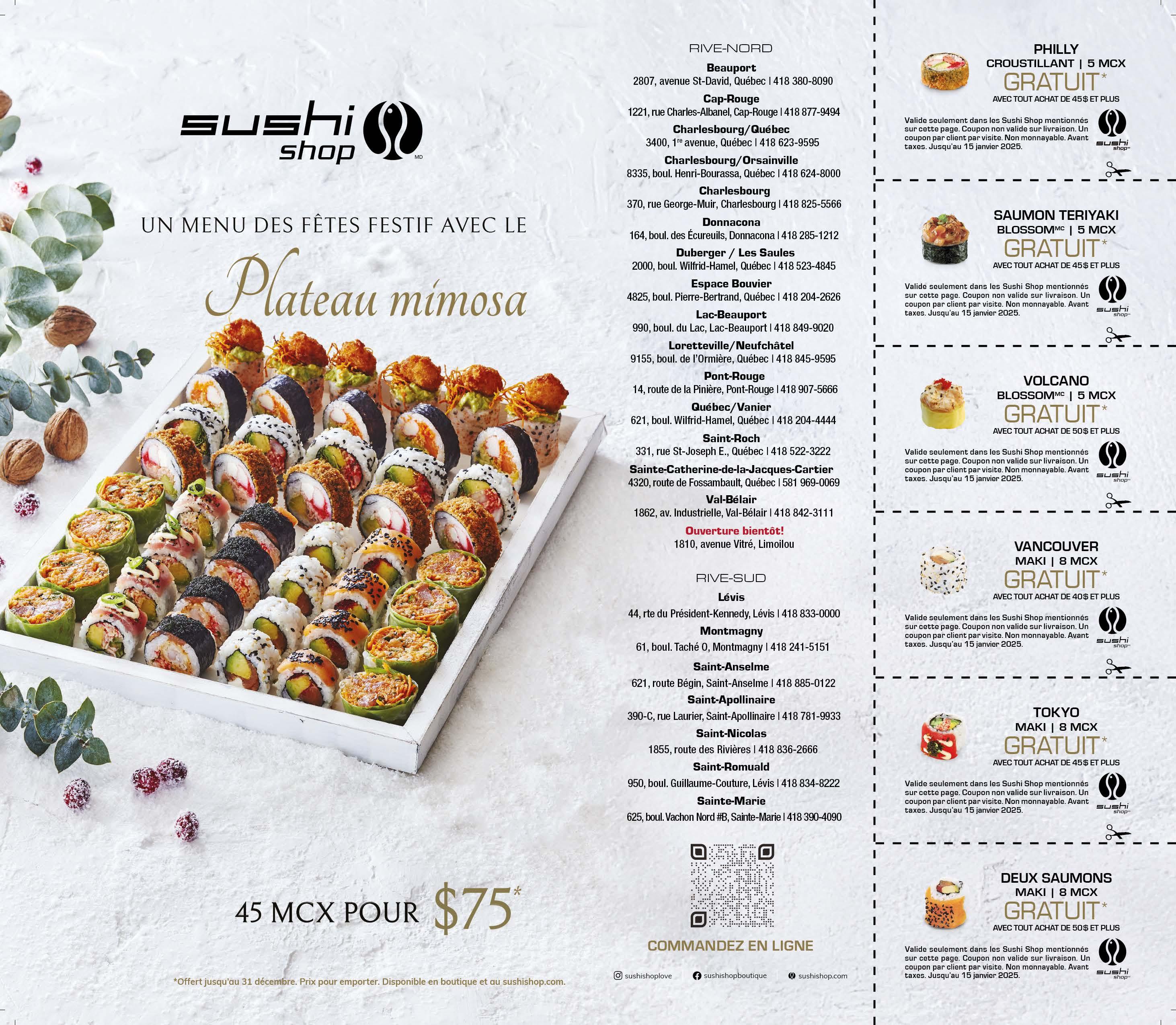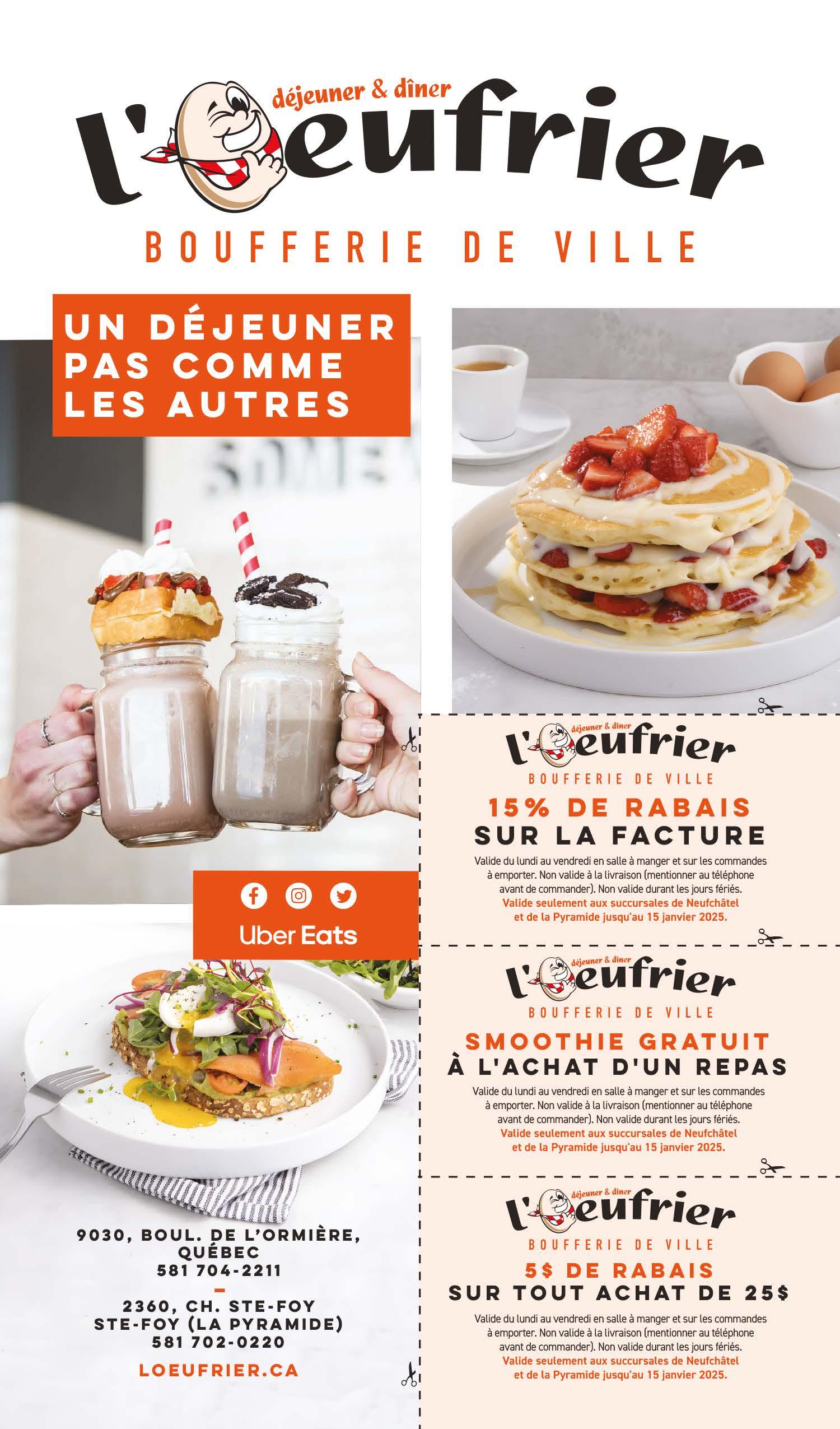 Succursales : Pyramide Ste-Foy, Halte-Bouffe Bouvier et Galeries de la Capitale. Exp.: 31 janvier 2025.