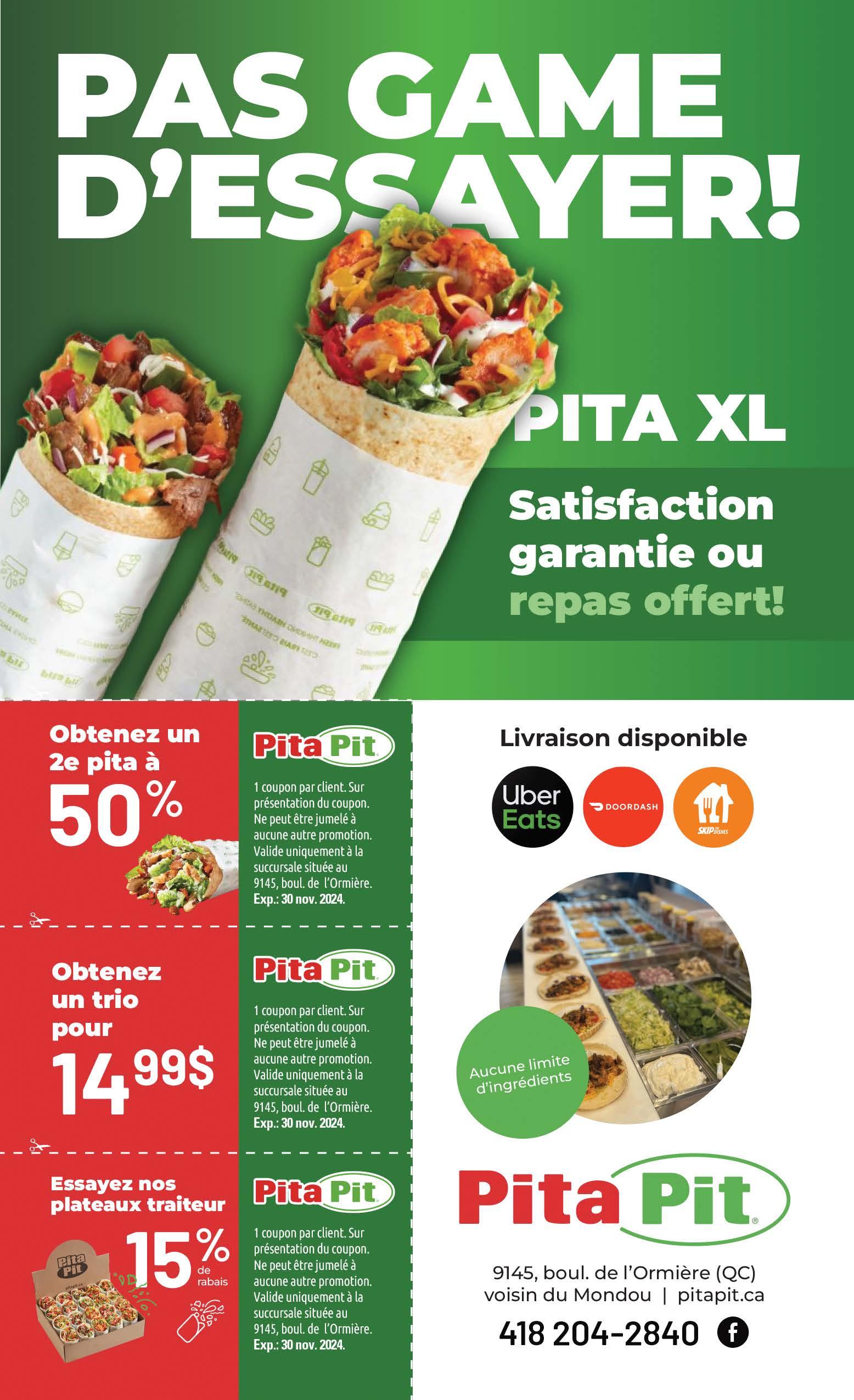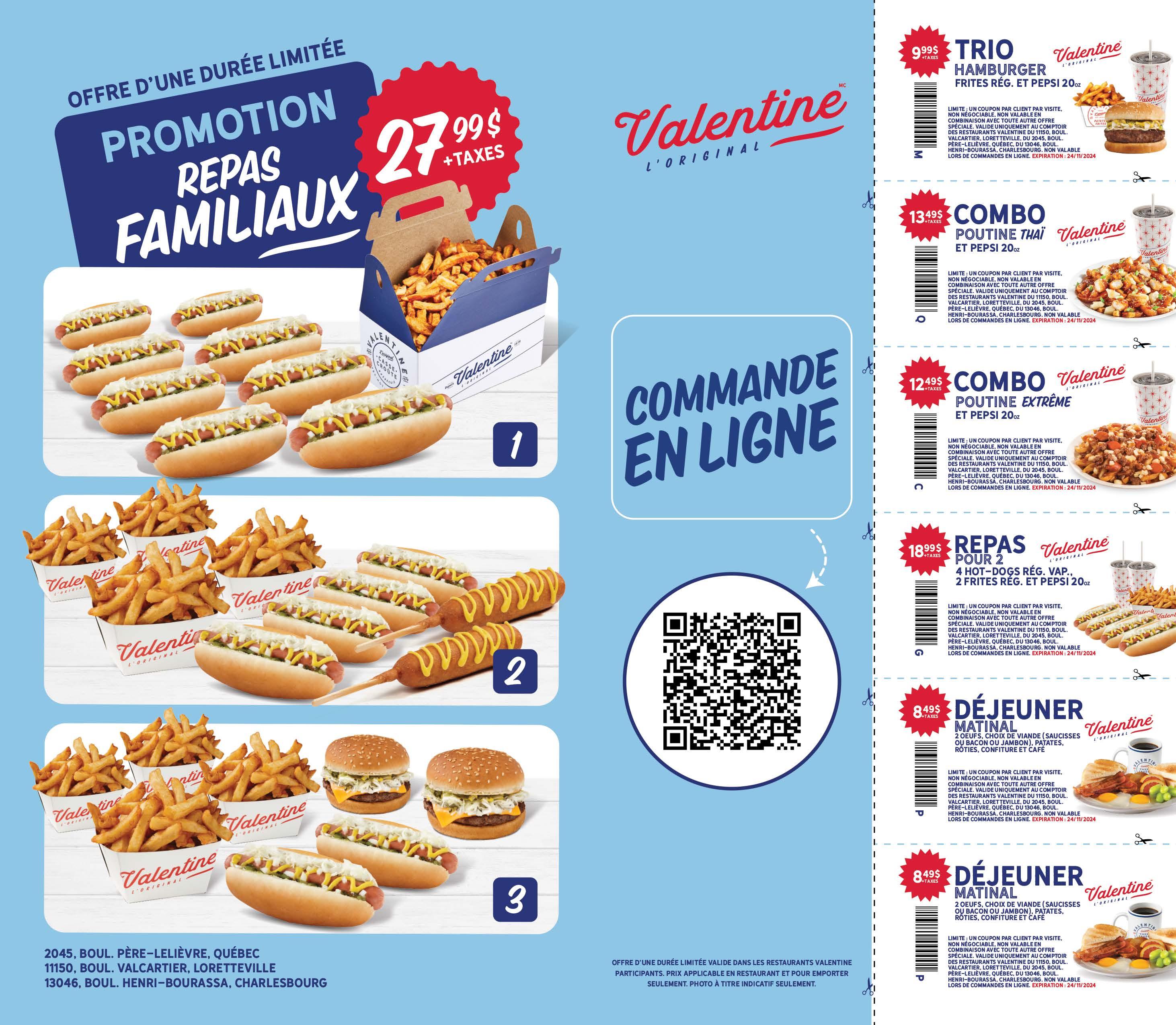Sur prĂ©sentation de ce coupon. 1 coupon par client. Ne peut ĂȘtre jumelĂ© Ă aucune autre promotion.Valide du lundi au vendredi jusquâau 30 novembre 2024.