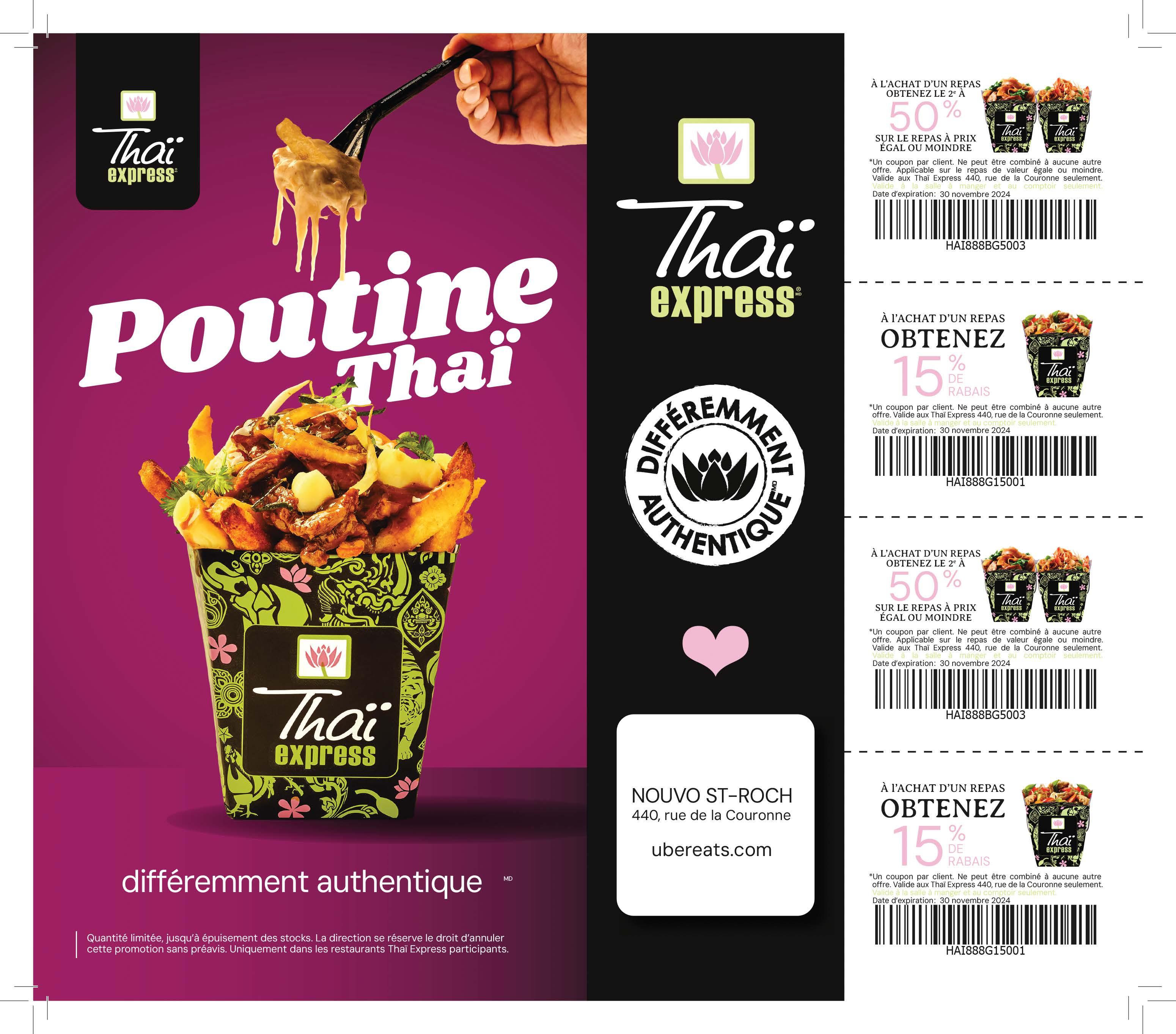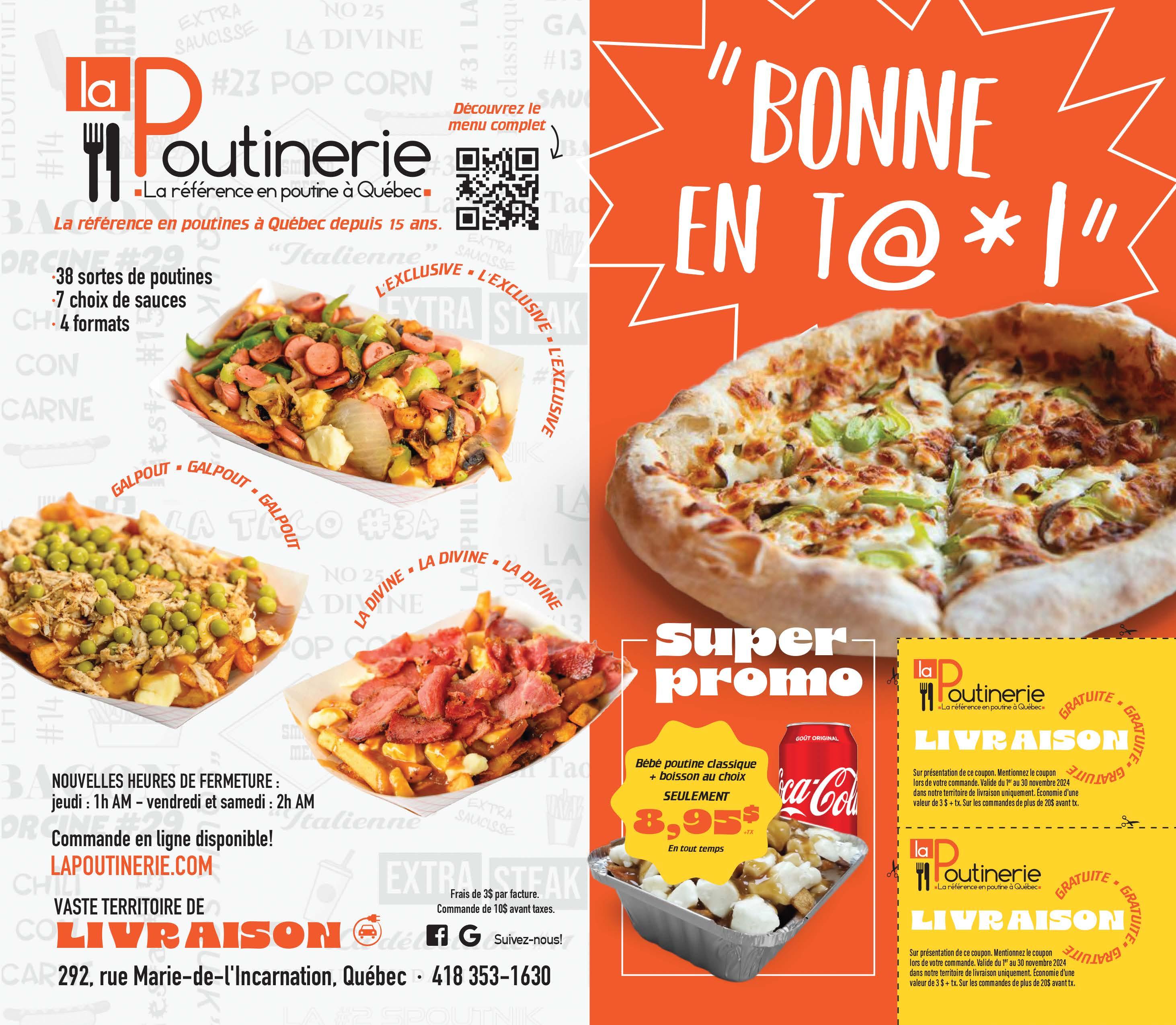 *Remplacez vos frites par une poutine à l'achat d'un repas. Ajoutez à votre panier une version poutine pour que le code promotionnel soit valide. Un rabais par facture. Ne peut être jumelé à aucune autre offre spéciale. Taxes en sus. Mentionnez cette offre lorsque vous passez votre commande et présentez votre coupon lors du paiement. EXP. : 26 novembre 2024.
