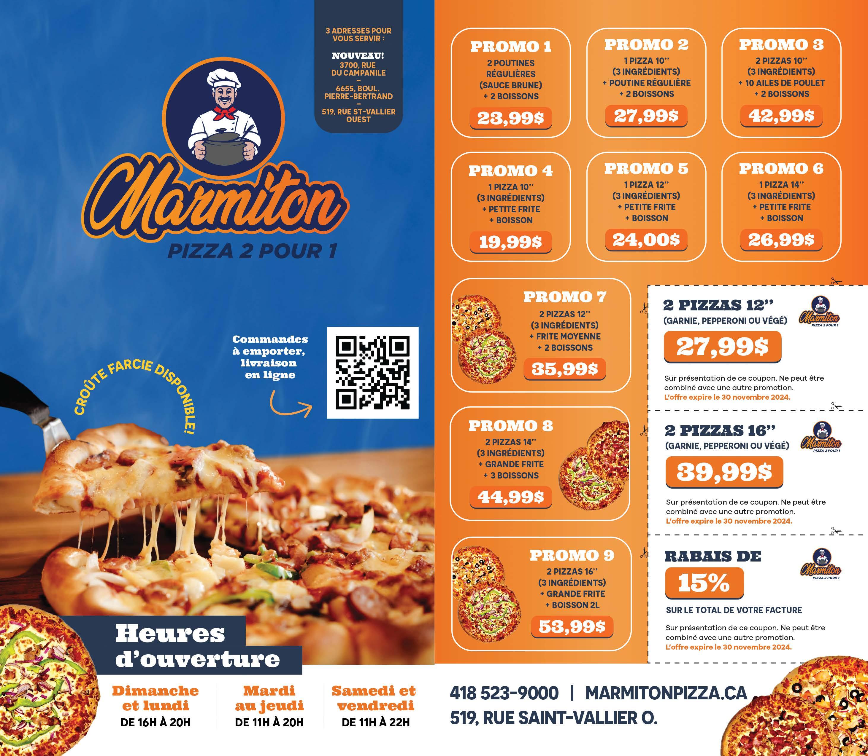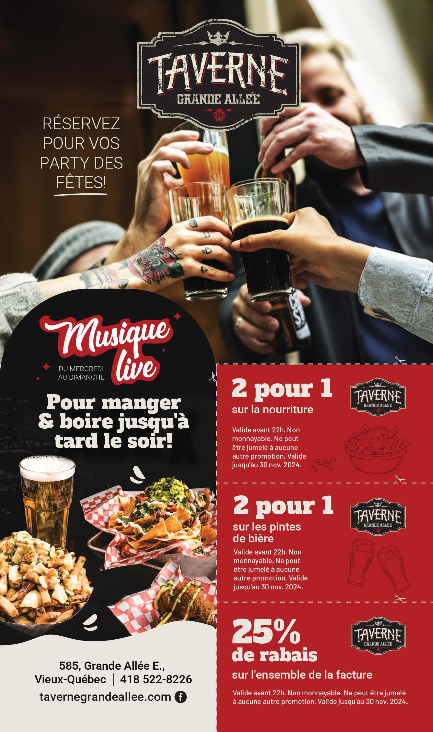 *Un rabais par facture. Ne peut être jumelé à aucune autre offre spéciale et boissons alcoolisées. Mentionnez cette offre lorsque présentez votre coupon lors du