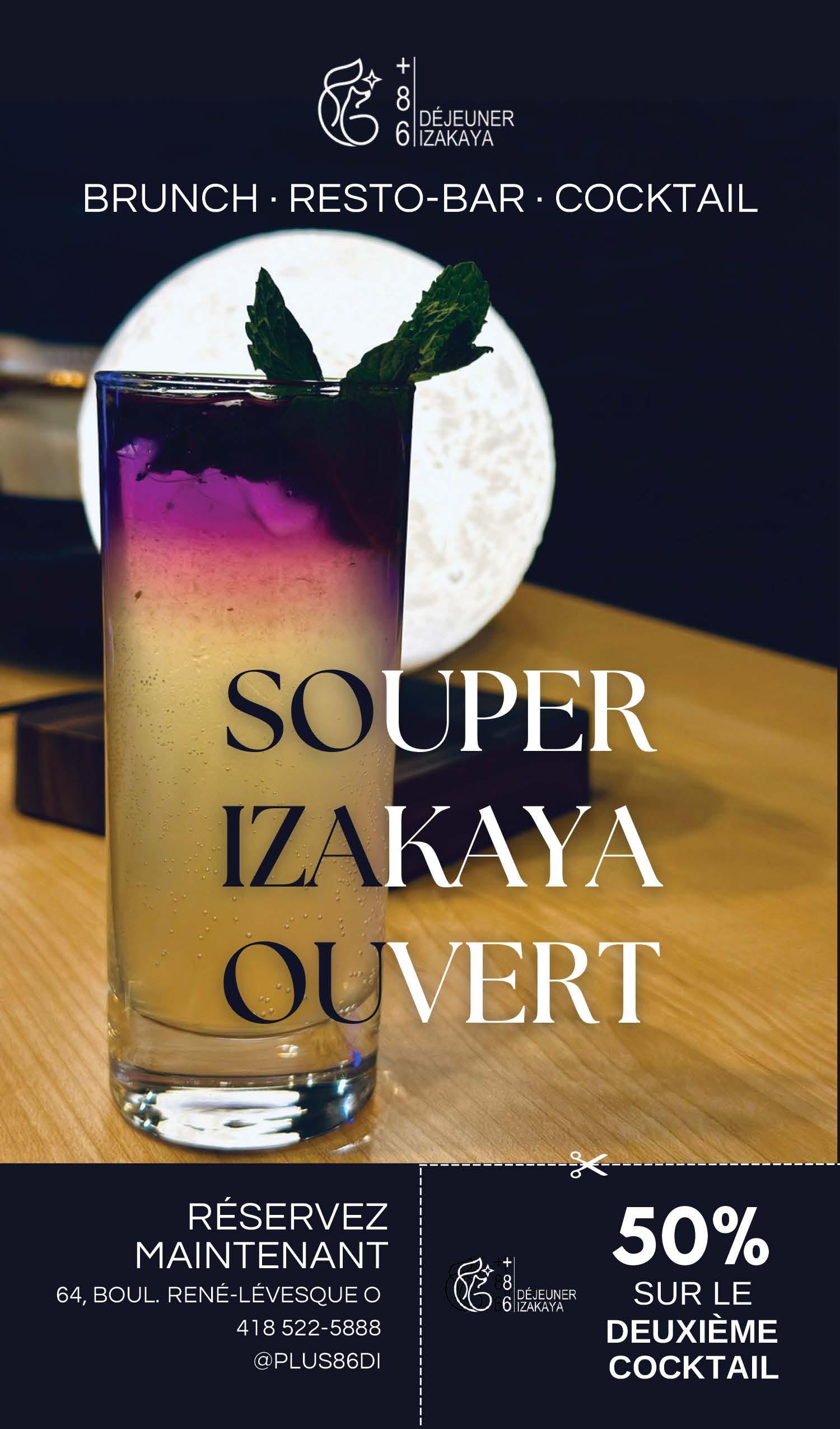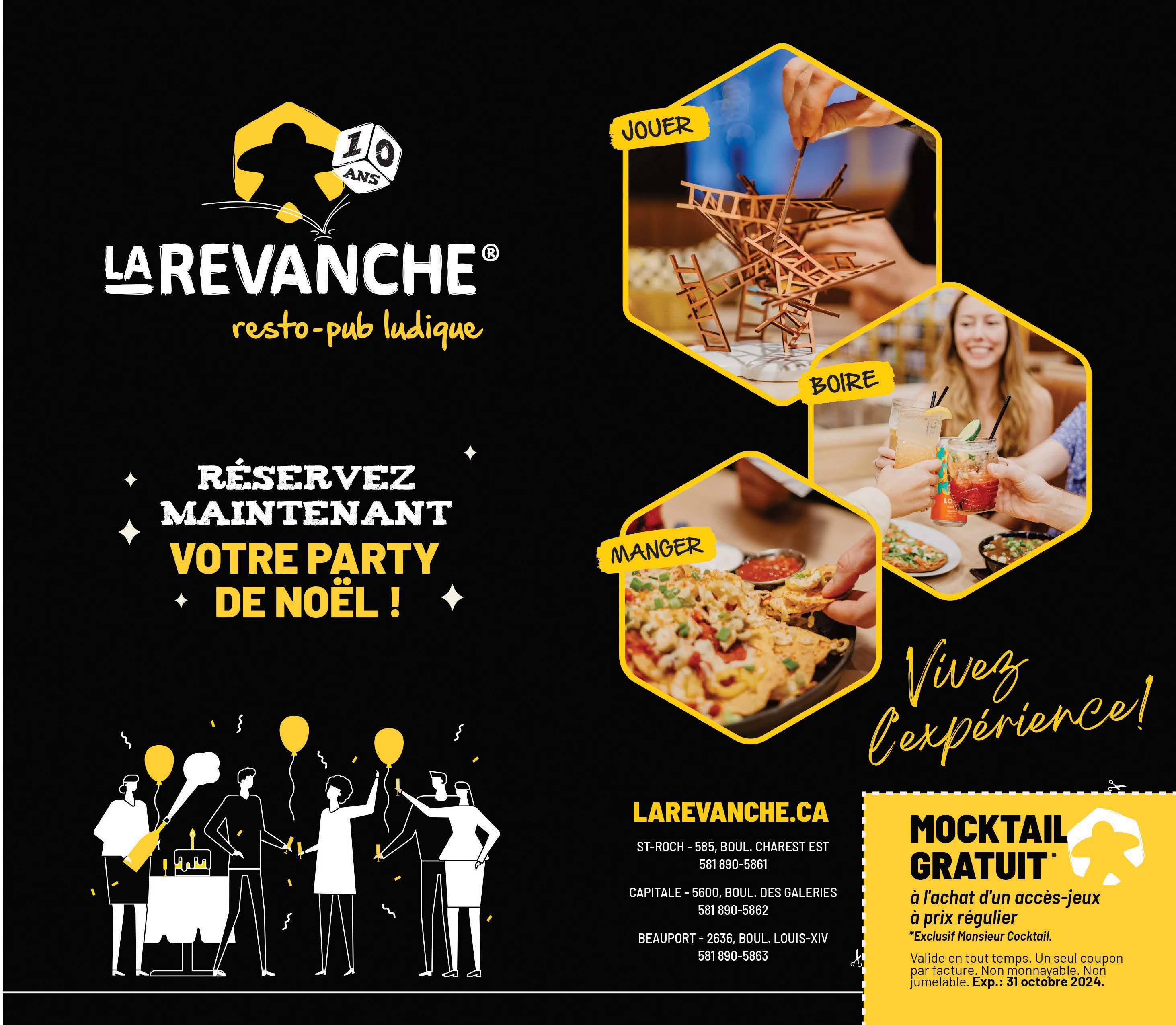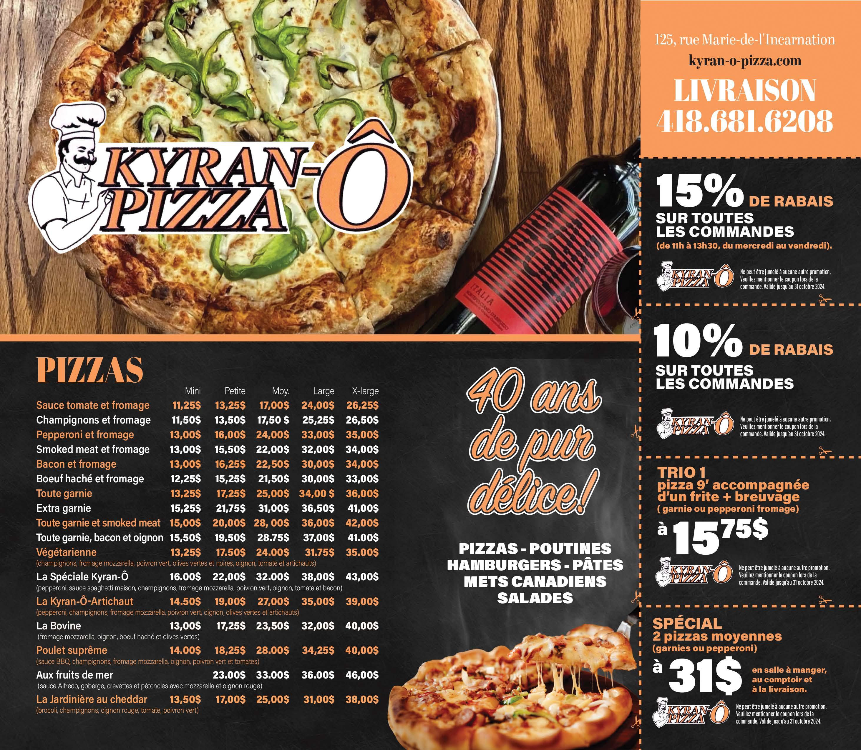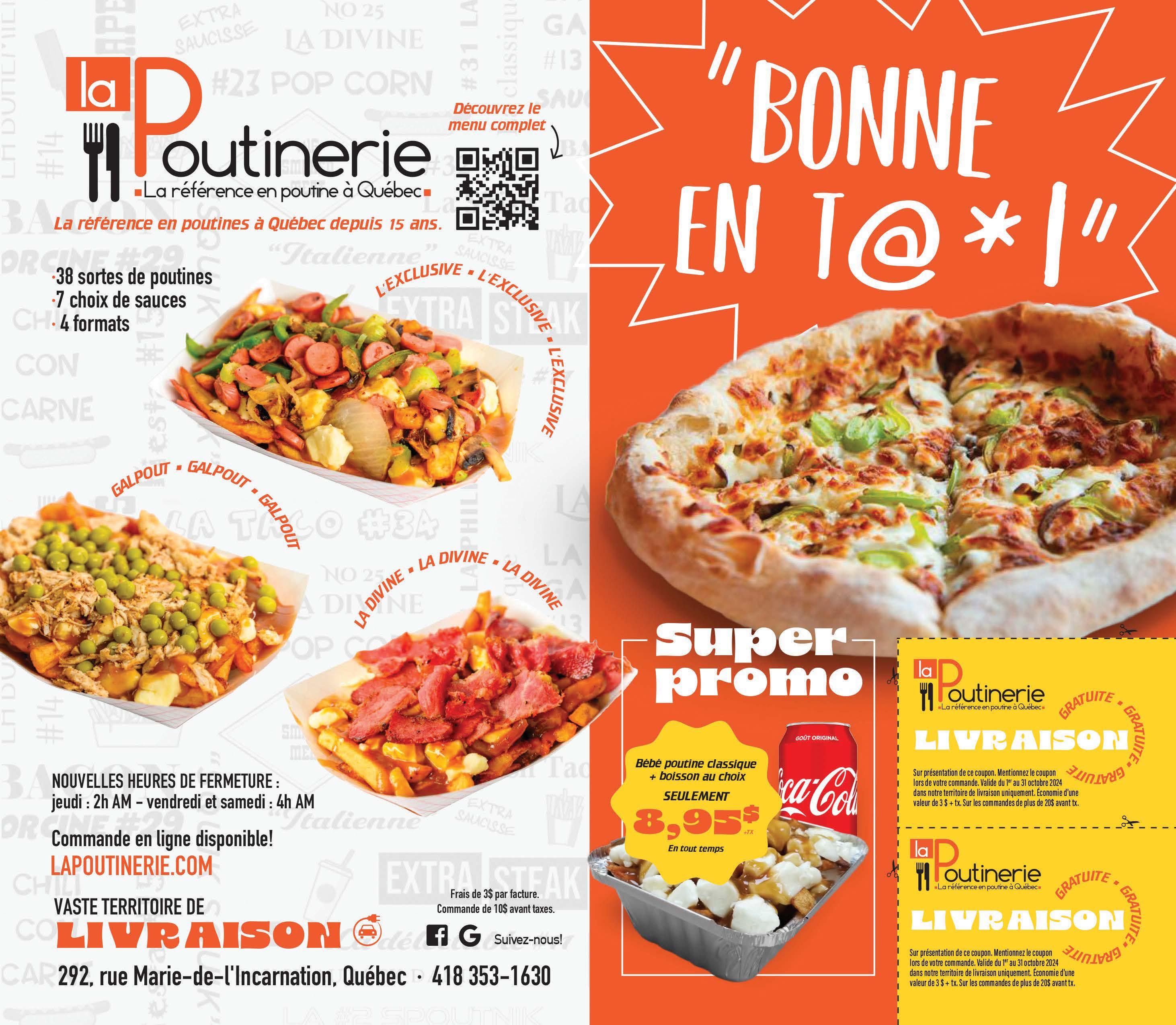 DISPONIBLES EN SALLE À MANGER, AU POUR EMPORTER ET À LA LIVRAISON