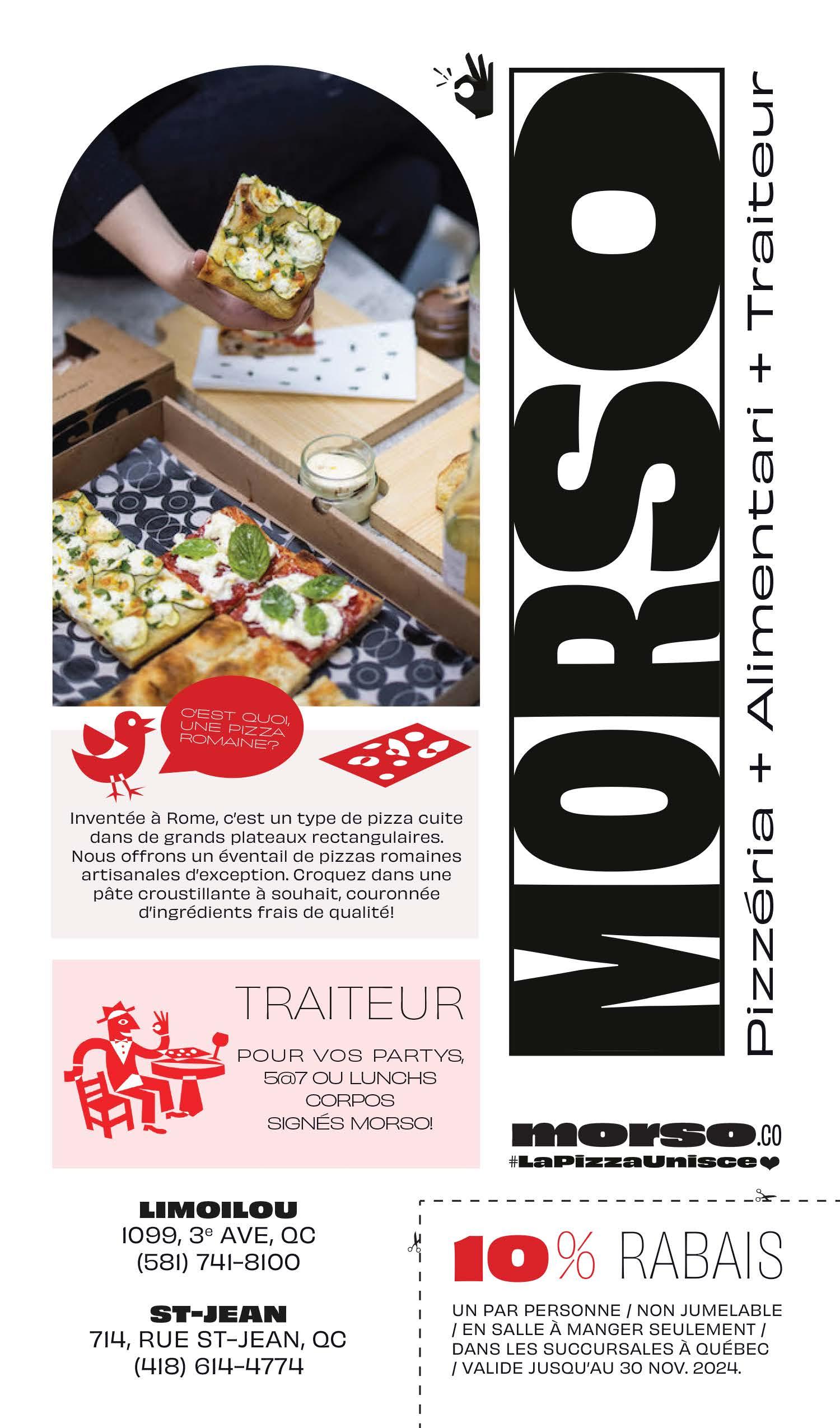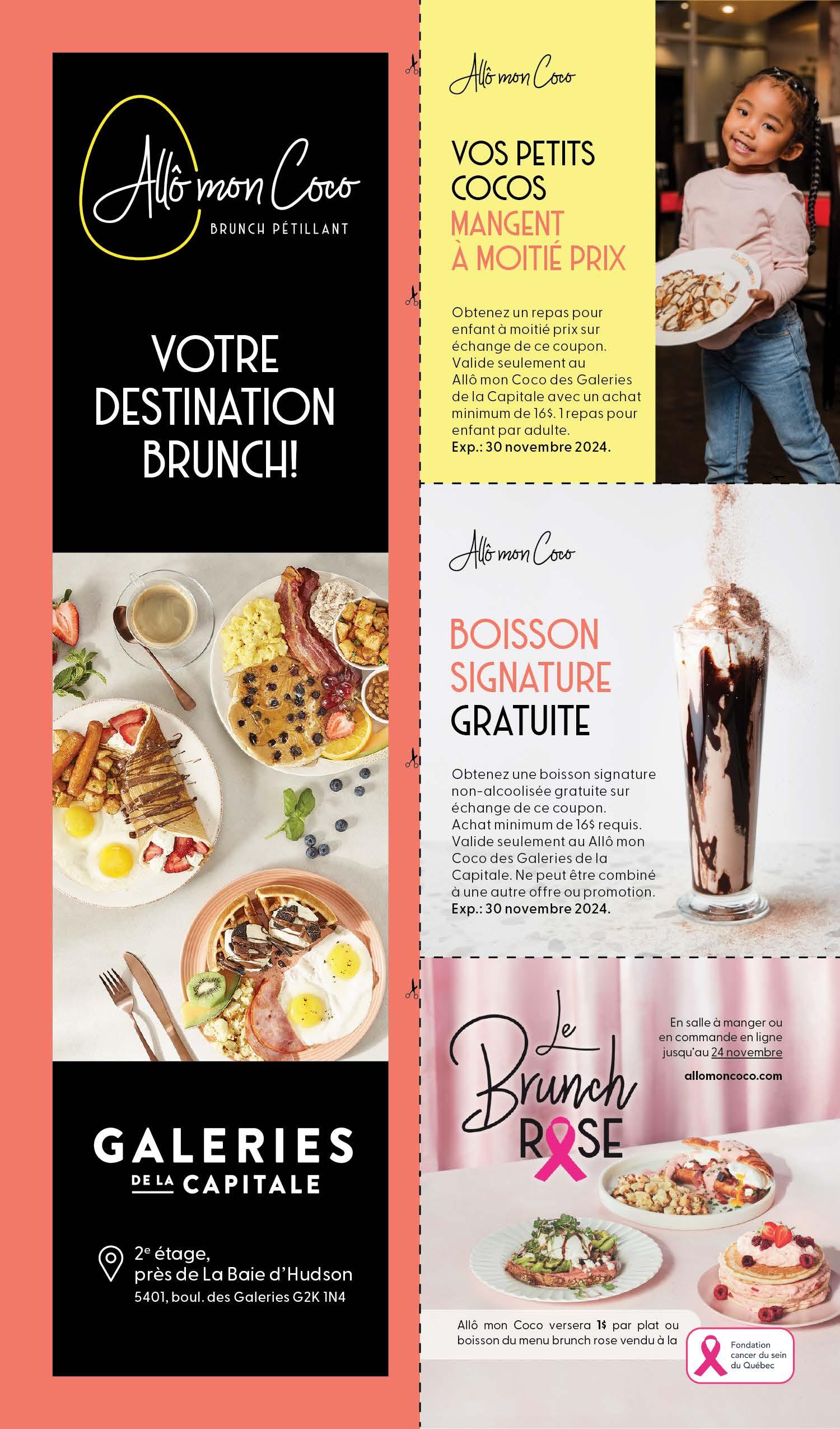 Sur prĂ©sentation de ce coupon. 1 coupon par client. Ne peut ĂȘtre jumelĂ© Ă aucune autre promotion.Valide du lundi au vendredi jusquâau 30 novembre 2024.