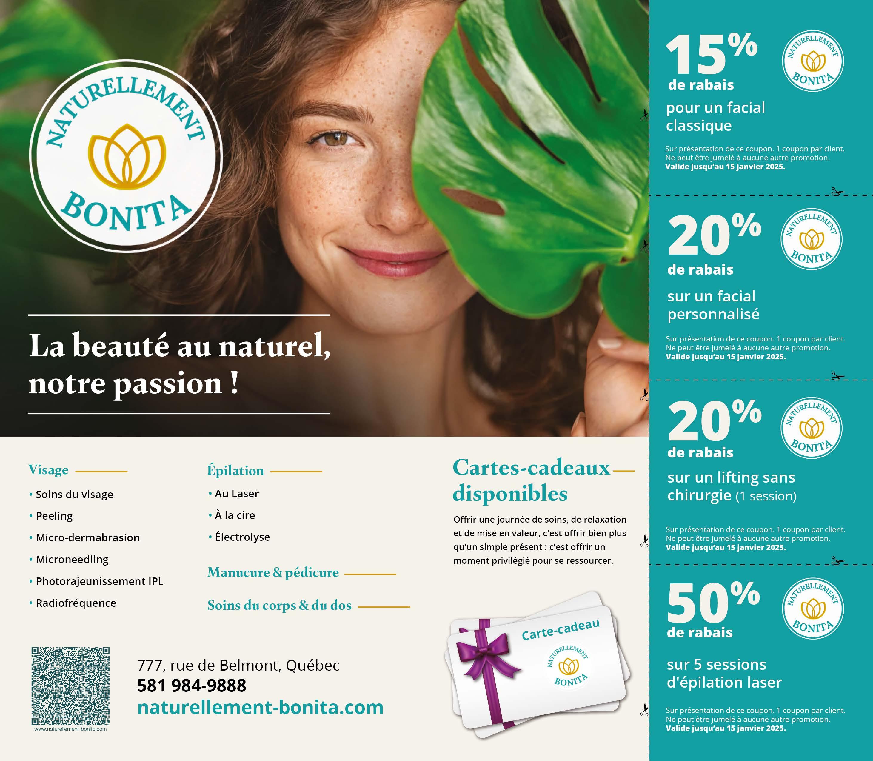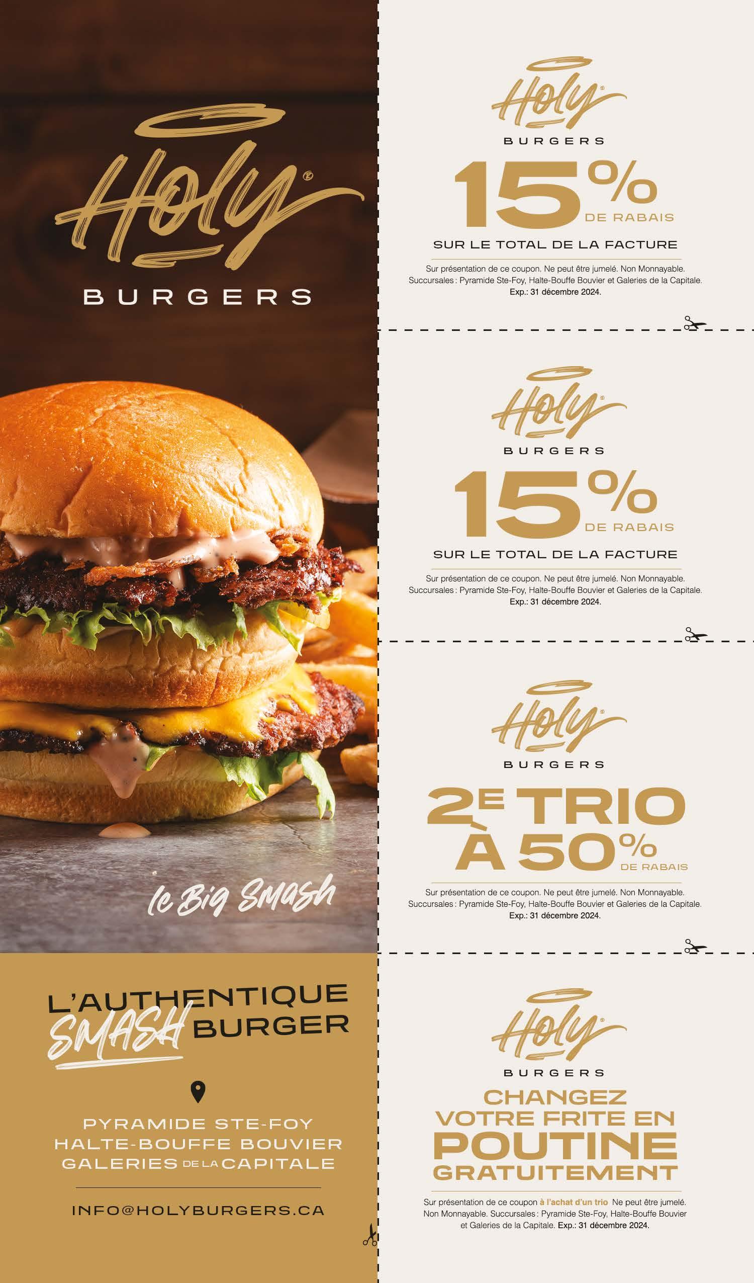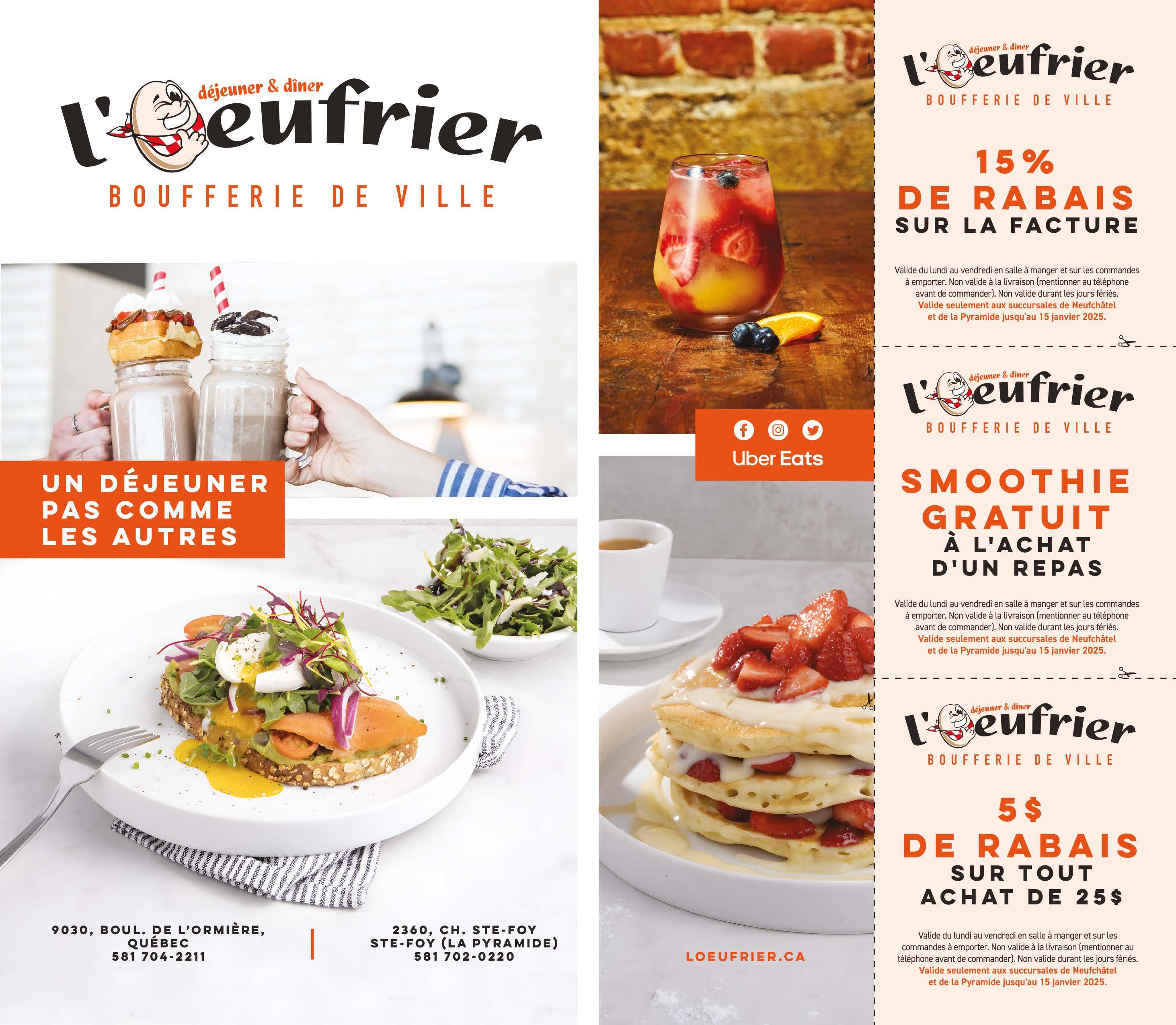 Sur présentation de ce coupon. Ne peut être jumelé. Non monnayable. Succursales : Pyramide Ste-Foy, Halte-Bouffe Bouvier et Galeries de la Capitale. Exp.: 31 janvier 2025.