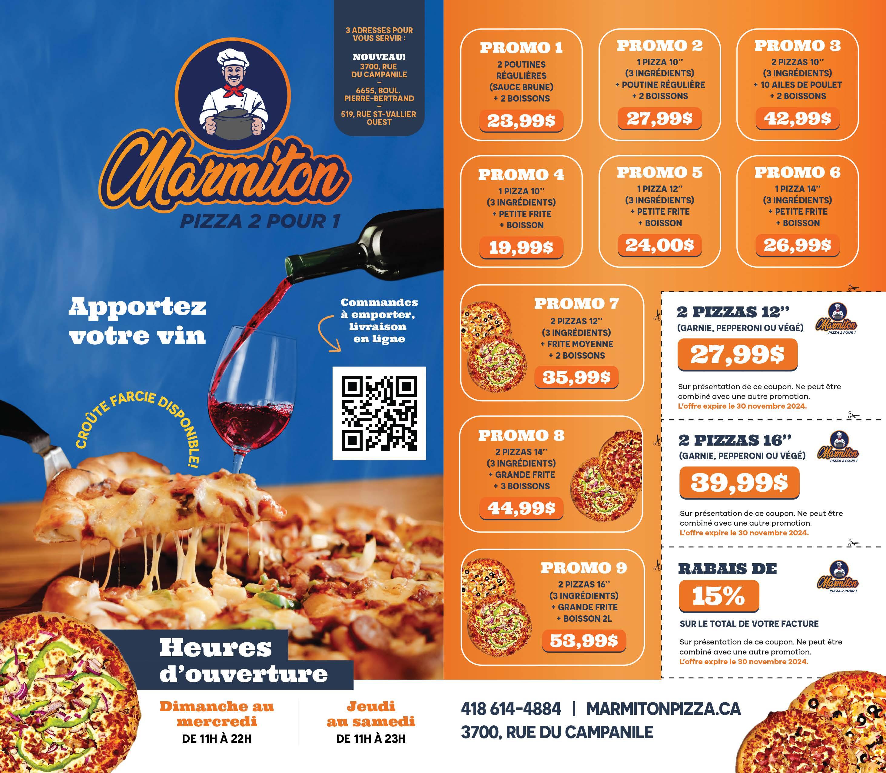 *Un rabais par facture. Ne peut être jumelé à aucune autre offre spéciale et boissons alcoolisées. Mentionnez cette offre lorsque présentez votre coupon lors du