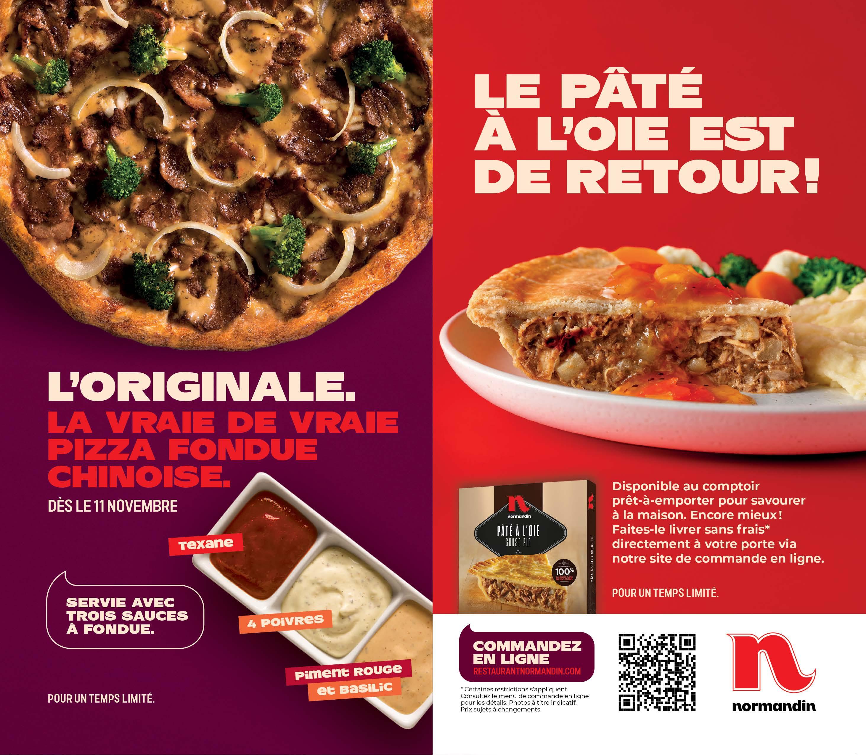 DISPONIBLES EN SALLE À MANGER, AU COMPTOIR POUR EMPORTER ET À LA LIVRAISON