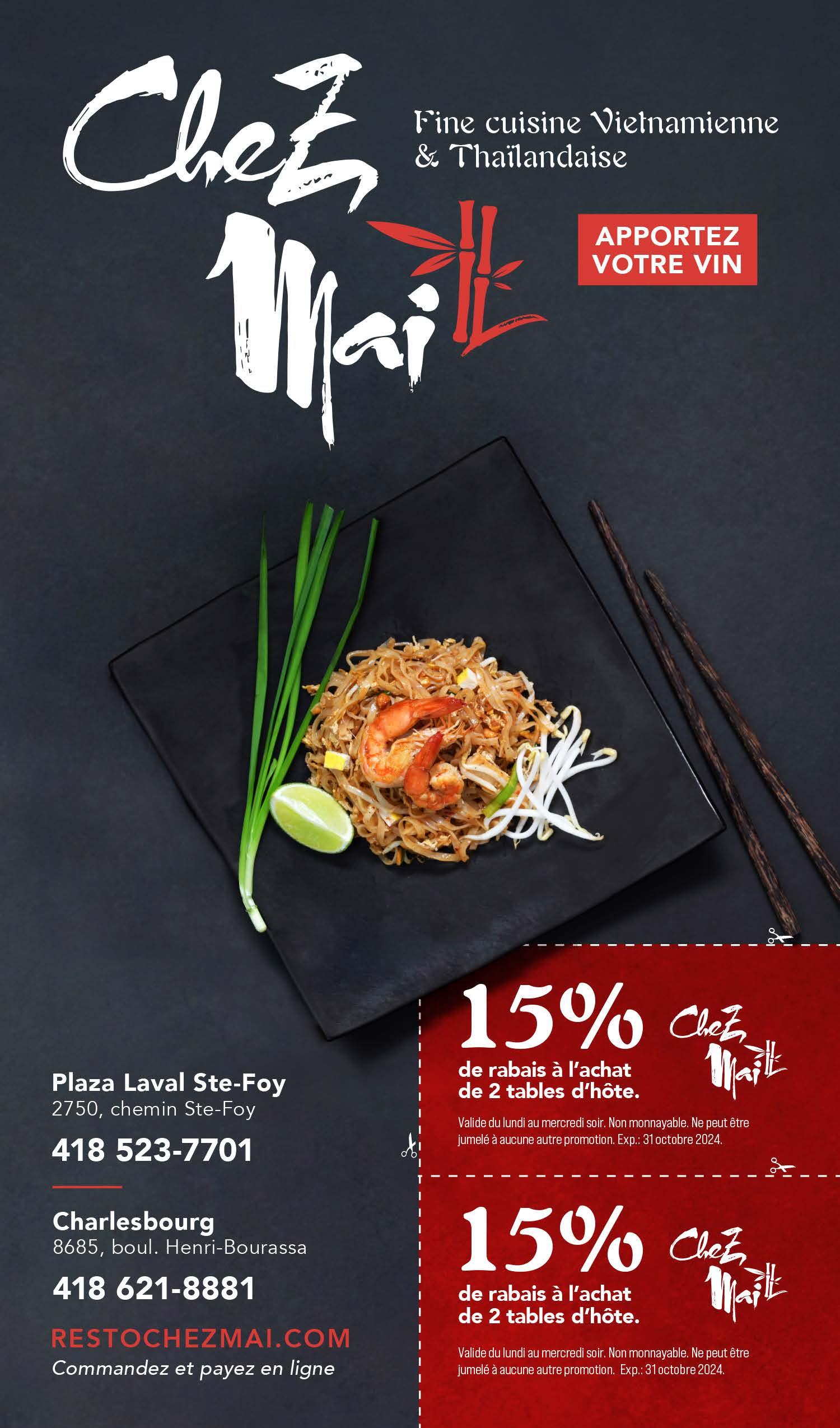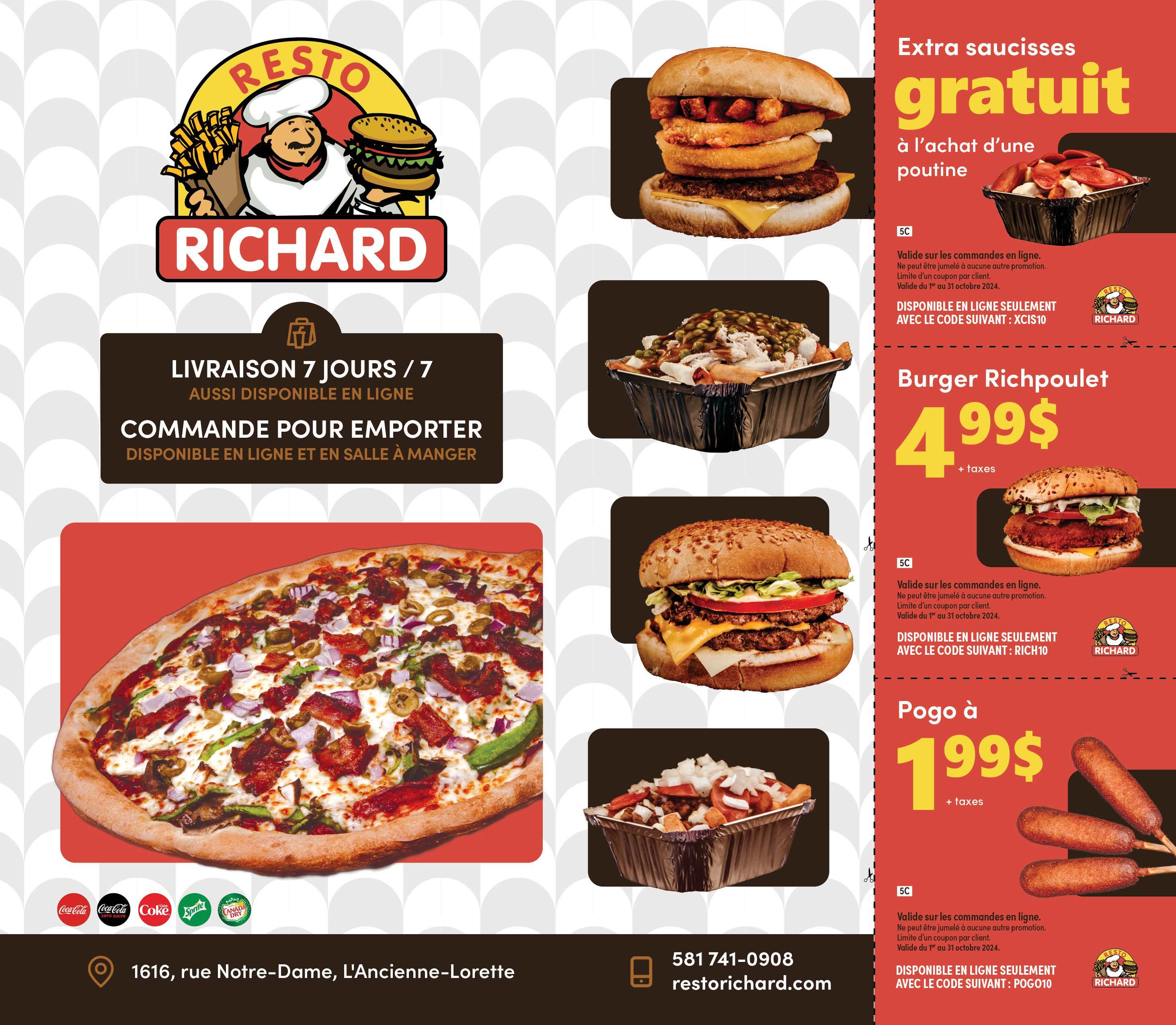 DISPONIBLES EN SALLE À MANGER, AU COMPTOIR POUR EMPORTER ET À LA LIVRAISON