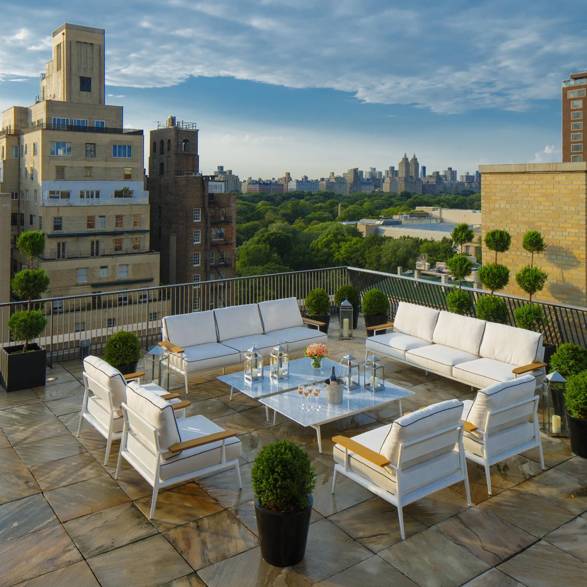 De la terrasse de 230 mètres carrés sur le toit de l’immeuble, la vue panoramique à 360 degrés sur Manhattan et Central Park est à couper le souffle. Le penthouse, situé aux 16e et 17e étages du palace newyorkais, accessible par un ascenseur privé, s’étend sur une superficie de 1 100 mètres carrés et comprend cinq chambres, une salle à manger pour 24 personnes, six salles de bains incroyablement luxueuses comprenant télévisions-miroirs à écran plat et chauffe-serviettes, un bar, un spa, un piano à queue et un salon-bibliothèque.