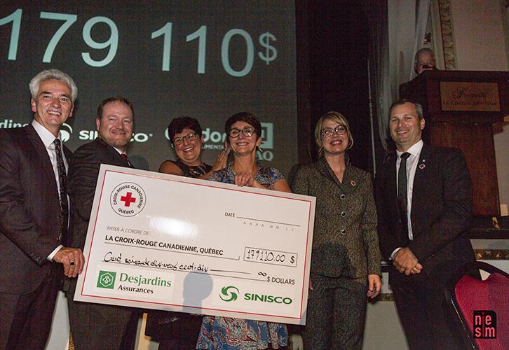 Georges Ouellet, Service alimentaire Gordon; Pascal Mathieu, Croix-Rouge canadienne; Danielle Quirion, Service alimentaire Gordon; Michèle Dionne, CroixRouge canadienne; Christine Dufour, Groupe Sinisco; et Denis Dubois, Desjardins Groupe d’assurances générales, coprésidents d’honneur de l’activité.