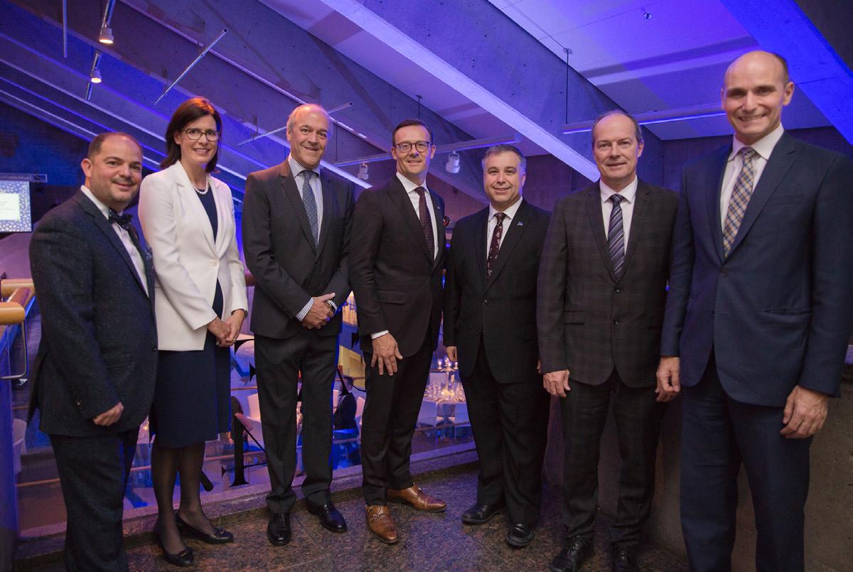 Les invités de la table d’honneur : Stéphan La Roche, Musée de la civilisation; Sophie d’Amours, rectrice, Université Laval; Claude Choquette, président, HDG et Groupe Le Massif et Fondation du Musée de la civilisation; Guy Cormier, président d’honneur du Grand Banquet, président et chef de la direction, Mouvement Desjardins; Sébastien Proulx, ministre de l’Éducation, du Loisir et du Sport et responsable de la Capitale-Nationale; Michel Dallaire, chef de la direction, Cominar, président, Musée de la civilisation; et Jean-Yves Duclos, ministre de la Famille, des Enfants et du Développement social. Absents : Régis Labeaume, maire de Québec; Martine Turcotte, v.-p. exécutive, Québec, Bell; et Daniel Gauthier, président des C.A. de HDG et Groupe Le Massif.