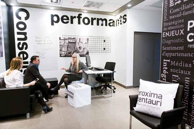 Proxima Centauri est considérée comme la firme innovante du Québec, non seulement en raison de ses champs d’intervention et de ses modes de gestion, mais également parce qu’elle a été l’une des premières à maîtriser les réseaux sociaux et à déployer des stratégies de communications et de marketing rH pour favoriser la notoriété de sa marque et de sa Marque employeur. Proxima Centauri a également démontré son avantgardisme par la conciliation travailfamille depuis ses débuts. Une direction conciliante, une formule de travail souple et une latitude sur le plan de l’autonomie sont au cœur du modèle de l’organisation du travail. L’entreprise a d’ailleurs été lauréate du prix Conciliation travail-famille en 2013.