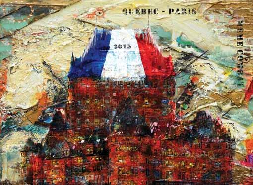 Techniques utilisées : huile, acrylique, pastel, intégration de cuivre recyclé provenant de l’ancienne toiture du Château Frontenac, sur toile de lin.