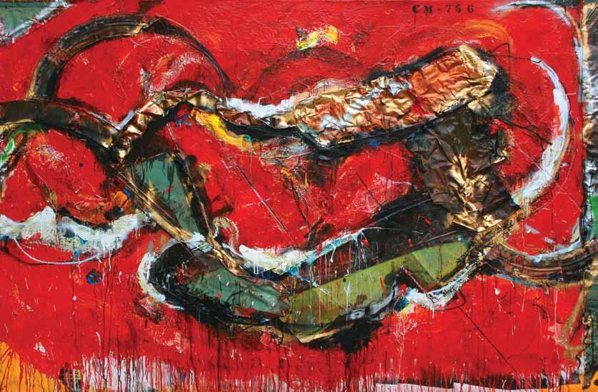 récupérer, recycler, redonner vie. gaudreau en fait les moteurs de son inspiration. Les techniques s’entremêlent, tout comme les matières employées : pastel à l’huile, acrylique, encaustique, laque, vernis, peinture en aérosol… Le narratif varie évidemment, mais l’essence de l’artiste réside dans chacune de ses œuvres, qu’il habille presque invariablement de couleurs vives, flamboyantes, vibrantes.