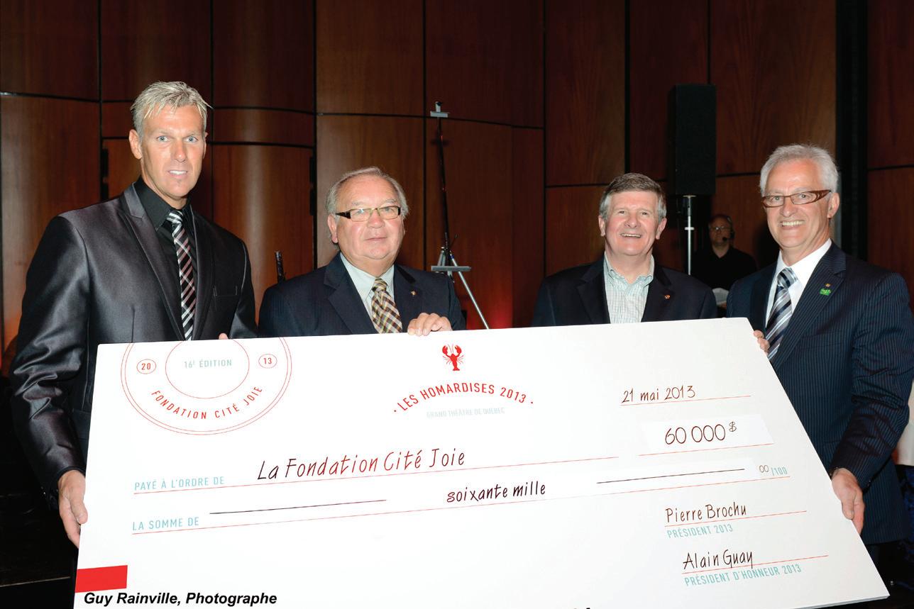 Le 21 mai dernier a eu lieu une pièce unique – qui plus est, à guichets fermés ! – sur la scène du Grand Théâtre de Québec, alors que s’est tenu le prestigieux souper-bénéfice Les Homardises 2013, au profit de la Fondation Cité Joie. Pour l’occasion, 400 hommes et femmes d’affaires de la grande région de Québec ont réitéré leur soutien à cet organisme. Celui-ci vient directement en aide aux personnes handicapées en leur offrant des séjours au centre de vacances et des services de répit pour les familles. L’activité a
