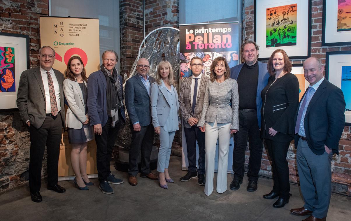À l’occasion du vernissage, le 2 mai dernier : Louis Gagnon, président, Opérations canadiennes Intact; Catherine Tadros, Bureau du Québec à Toronto; Pierre Lassonde, grand philanthrope et président du C.A. du Conseil des arts du Canada; Ron Bernbaum et Renee Bleenan, PearTree Canada; Jean-Luc Murray, directeur général, MNBAQ; Lise Dubé, PDG, Fondation du MNBAQ; Sylvain Landry et Joanne Thompson, propriétaires, Galerie Thompson Landry; Paul C. Genest, premier v.-p., Power Corporation du Canada et administrateur de Business for the arts.