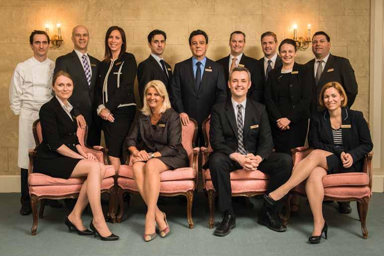 De gauche à droite : arrière : Baptiste Peupion, chef exécutif; Patrick Vincelette, directeur de l'hébergement; Geneviève Parent, directrice des relations publiques; Franck Cuellar, directeur des services techniques; robert mercure, directeur général; Frédéric Paré, directeur des opérations; alexandre Usseglio, directeur de la restauration; Patricia Carré, directrice de la réception et Stéphane Côté, directeur aux banquets et congrès.