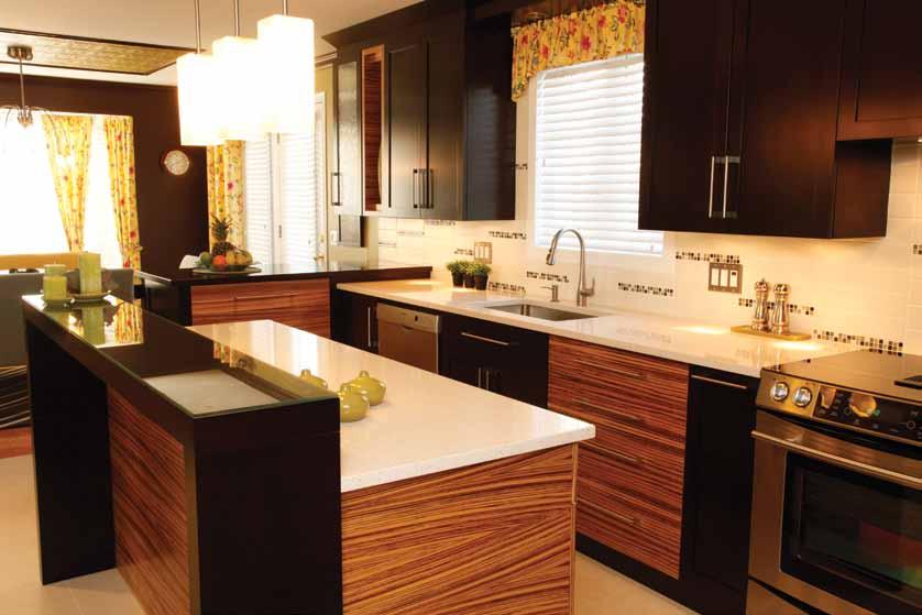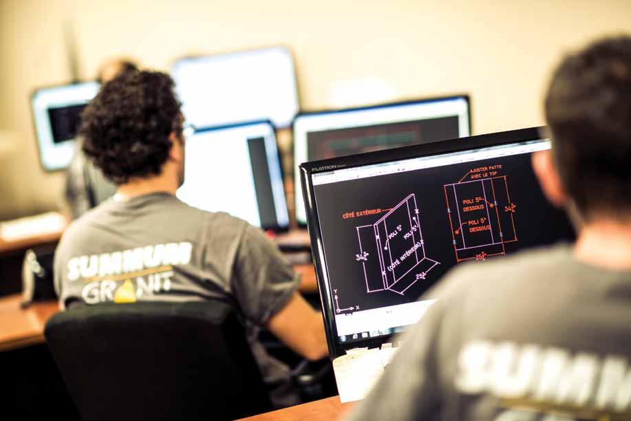 de Saint-Sébastien, auxquels s’ajoutent 12 000 pieds carrés d’espaces administratifs et 3 salles d’exposition. Un investissement total de plus d’un million et demi de dollars rendu essentiel pour répondre adéquatement à une demande toujours grandissante pour ce qui se fait de meilleur, c’està-dire les produits haut de gamme que sont le granit, le marbre, le quartz et les surfaces solides (Corian et Staron). « Plus que jamais, nous sommes en mesure de répondre aux exigences les plus élevées en matière de projets résidentiels et commerciaux de toutes envergures », confirme Mme Paradis. Mais quel est donc le secret du succès de Summum Granit ? a-t-on voulu savoir.
