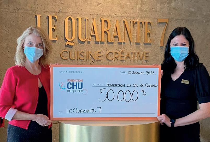 Fidèles à leurs valeurs de soutien envers la communauté, les copropriétaires du restaurant Le Quarante 7 ont remis un montant de 25 $ par coffret gourmand vendu durant la campagne du temps des Fêtes. Résultat : la somme de 50 000 $ a été recueillie et remise cette année à la Fondation du CHU de Québec.